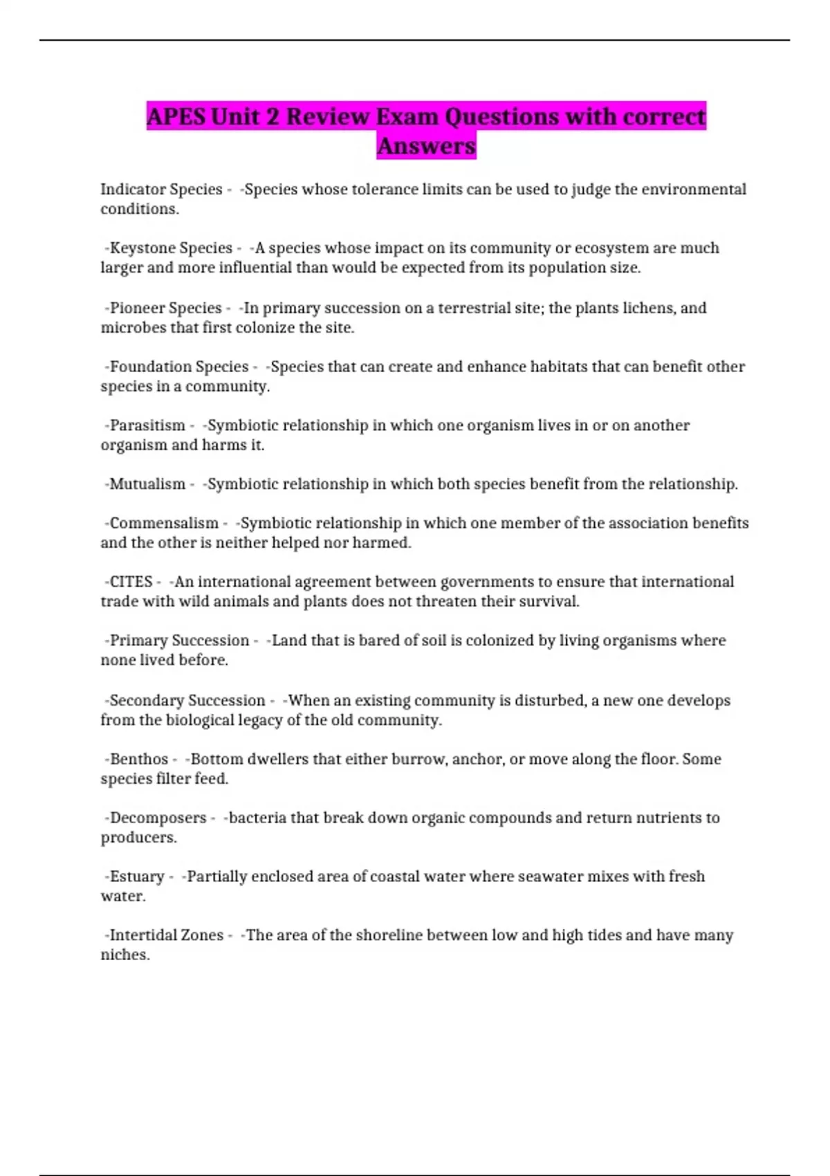 APES Unit 2 Review Exam Questions with correct
