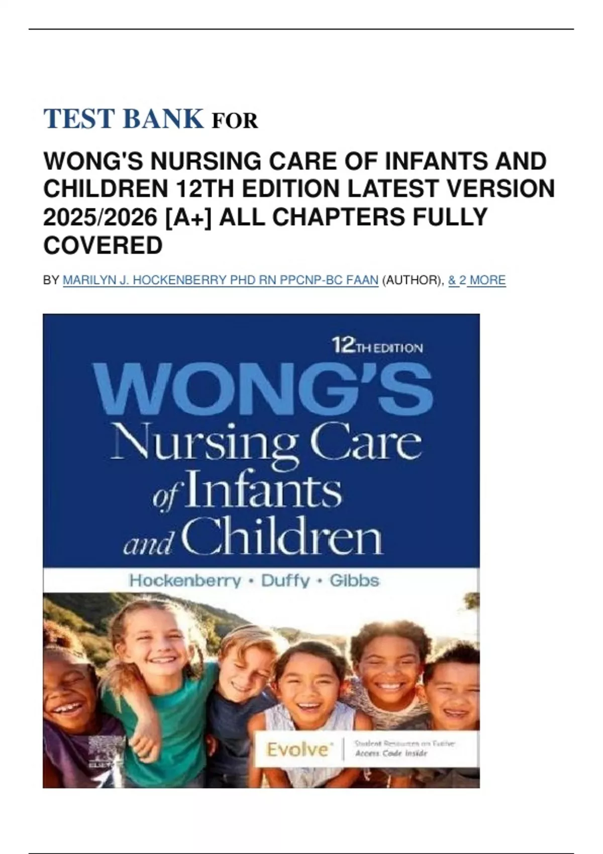 TEST BANK FOR WONG'S NURSING CARE OF INFANTS AND CHILDREN 12TH EDITION LATEST VERSION 2025/2026 [A+] ALL CHAPTERS FULLY COVERED BY MARILYN J. HOCKENBERRY PHD FAAN (AUTHOR), & 2 MORE