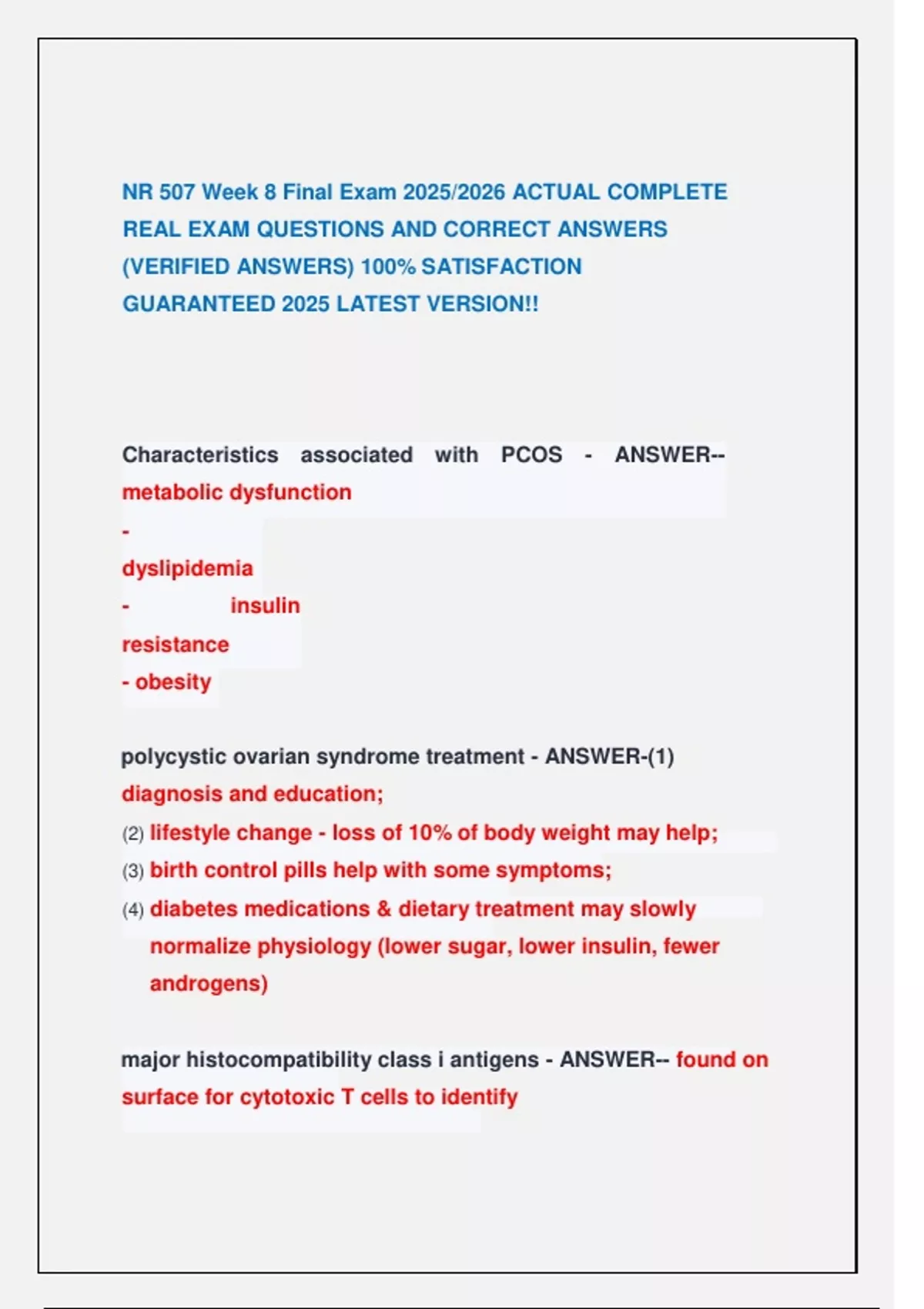 NR 507 Week 8 Final Exam 2025/2026 ACTUAL COMPLETE REAL EXAM QUESTIONS AND CORRECT ANSWERS (VERIFIED ANSWERS) 100% SATISFACTION GUARANTEED 2025 LATEST VERSION!!