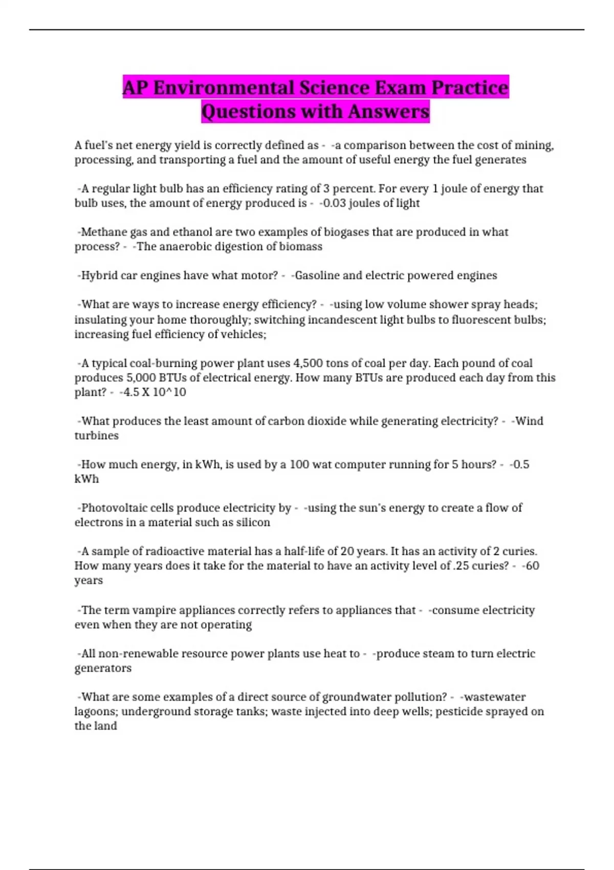 AP Environmental Science Exam Practice