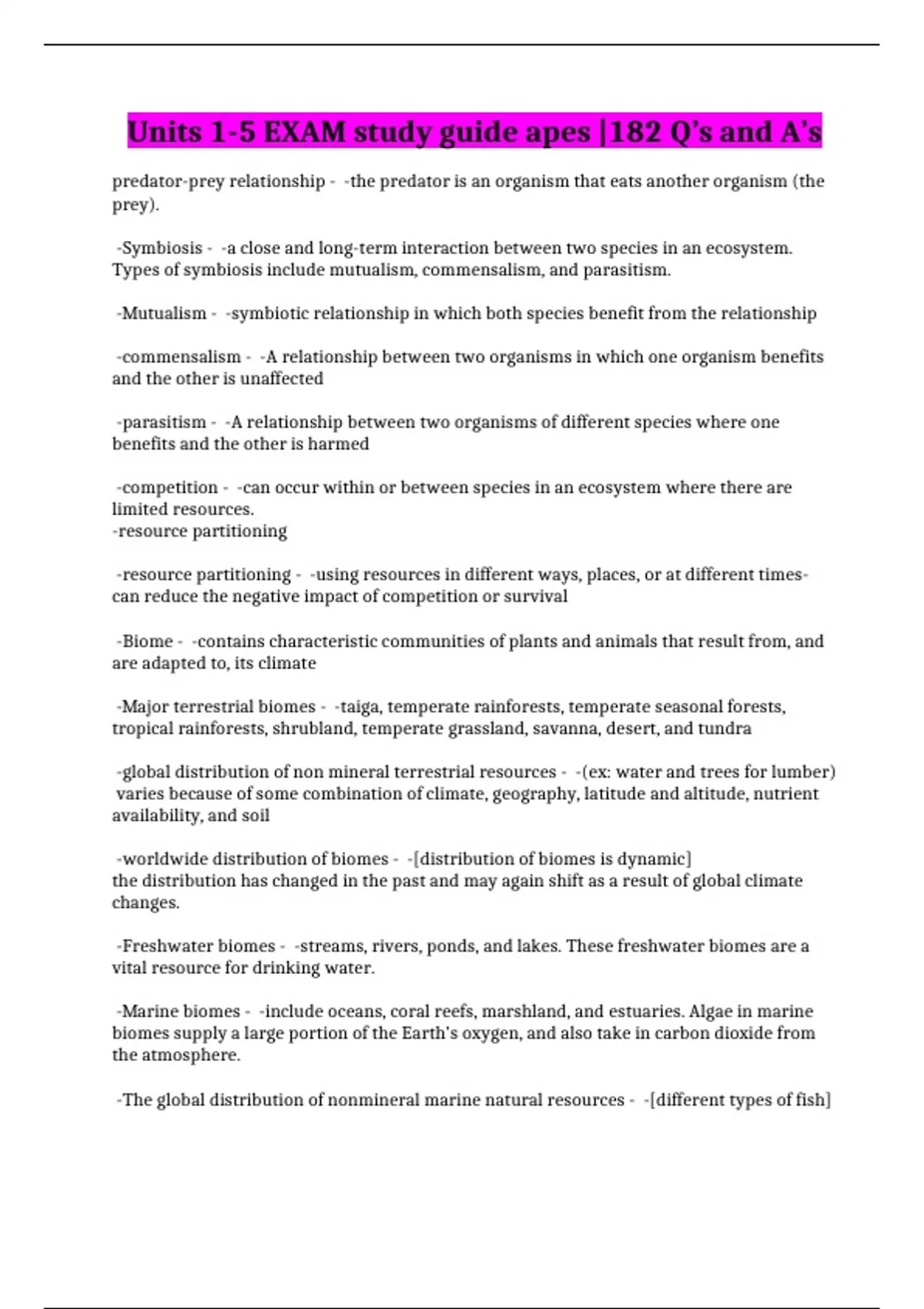 Units 1-5 EXAM study guide apes |182 Q’s and A’s