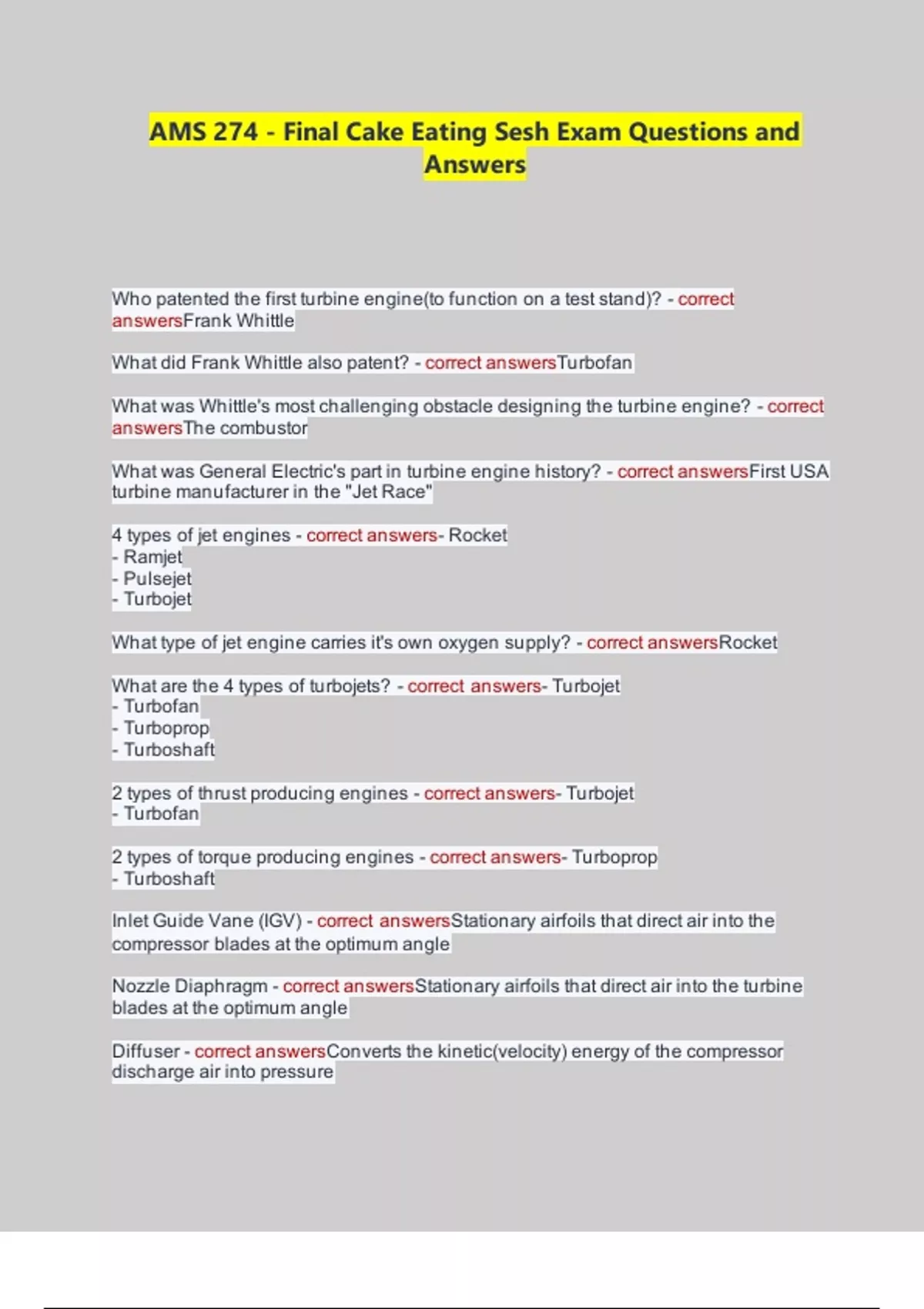 Diffuser - correct answersConverts the kinetic(velocity) energy of the compressor