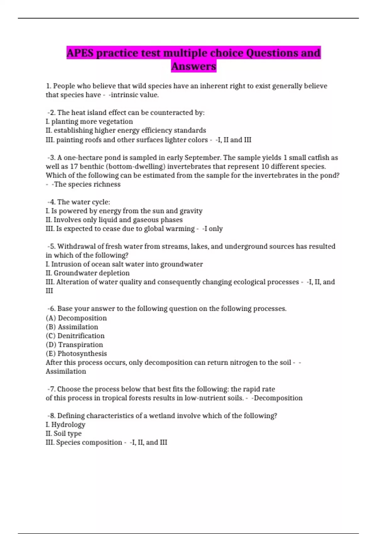 APES practice test multiple choice Questions and