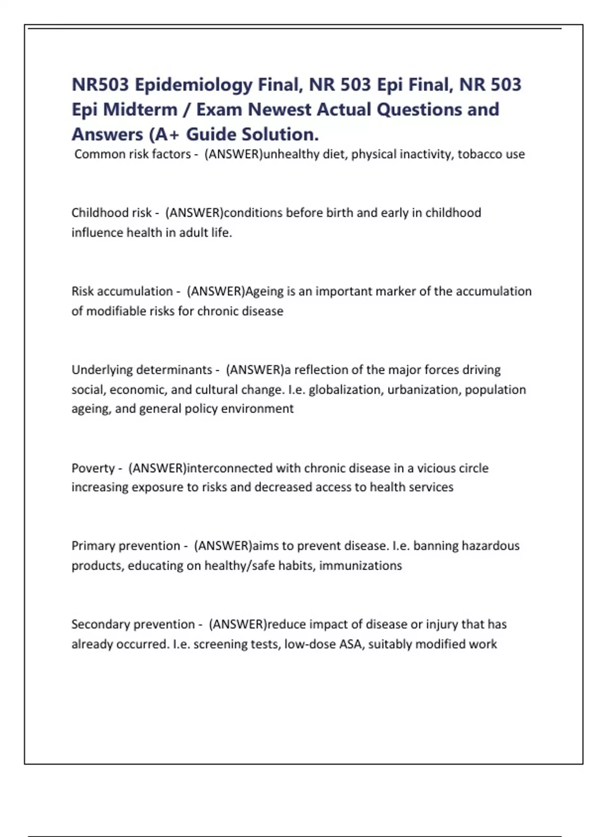 NR503 Epidemiology Final, NR 503 Epi Final, NR 503