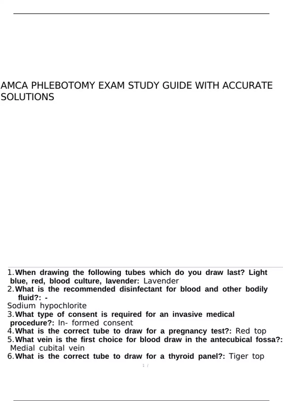 AMCA PHLEBOTOMY EXAM STUDY GUIDE WITH ACCURATE