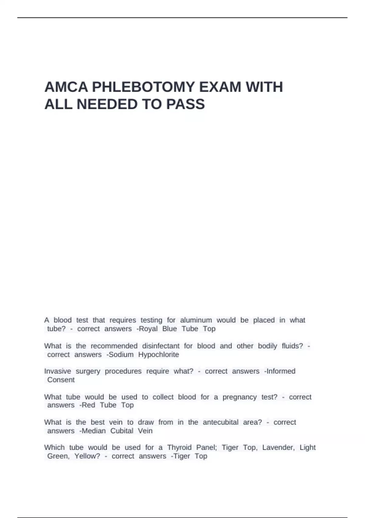 AMCA PHLEBOTOMY EXAM WITH