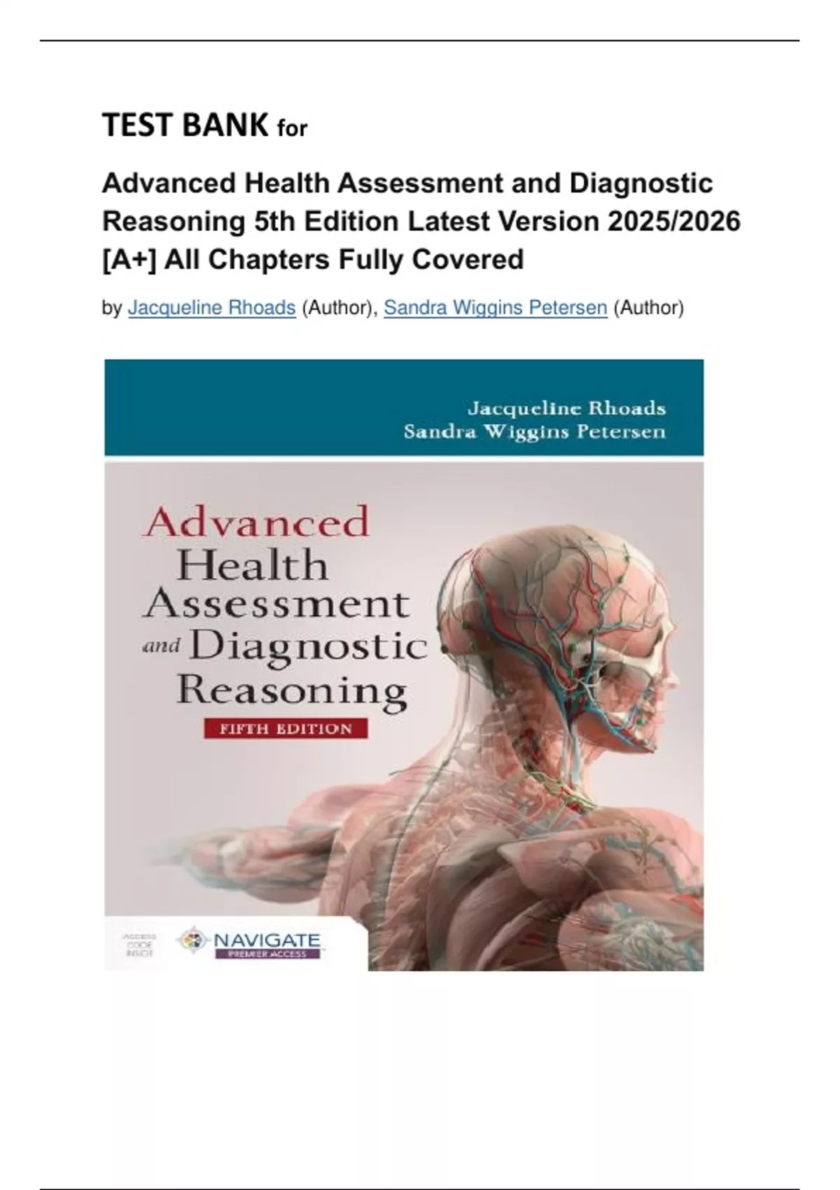 TEST BANK for Advanced Health Assessment and Diagnostic Reasoning 5th Edition Latest Version 2025/2026 [A+] All Chapters Fully Covered by Jacqueline Rhoads (Author), Sandra Wiggins Petersen (Author)