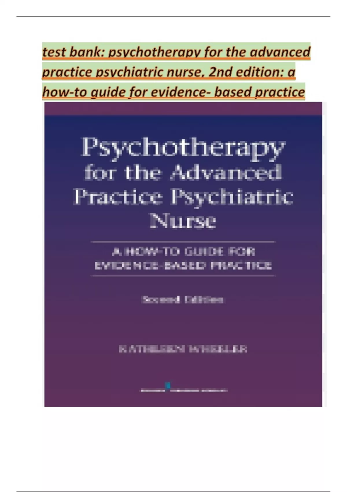 test bank: psychotherapy for the advanced practice psychiatric nurse, 2nd edition: a how-to guide for evidence- based practice test bank: psychotherapy for the advanced practice psychiatric nurse, 2nd edition: a how-to guide for evidence- based practice