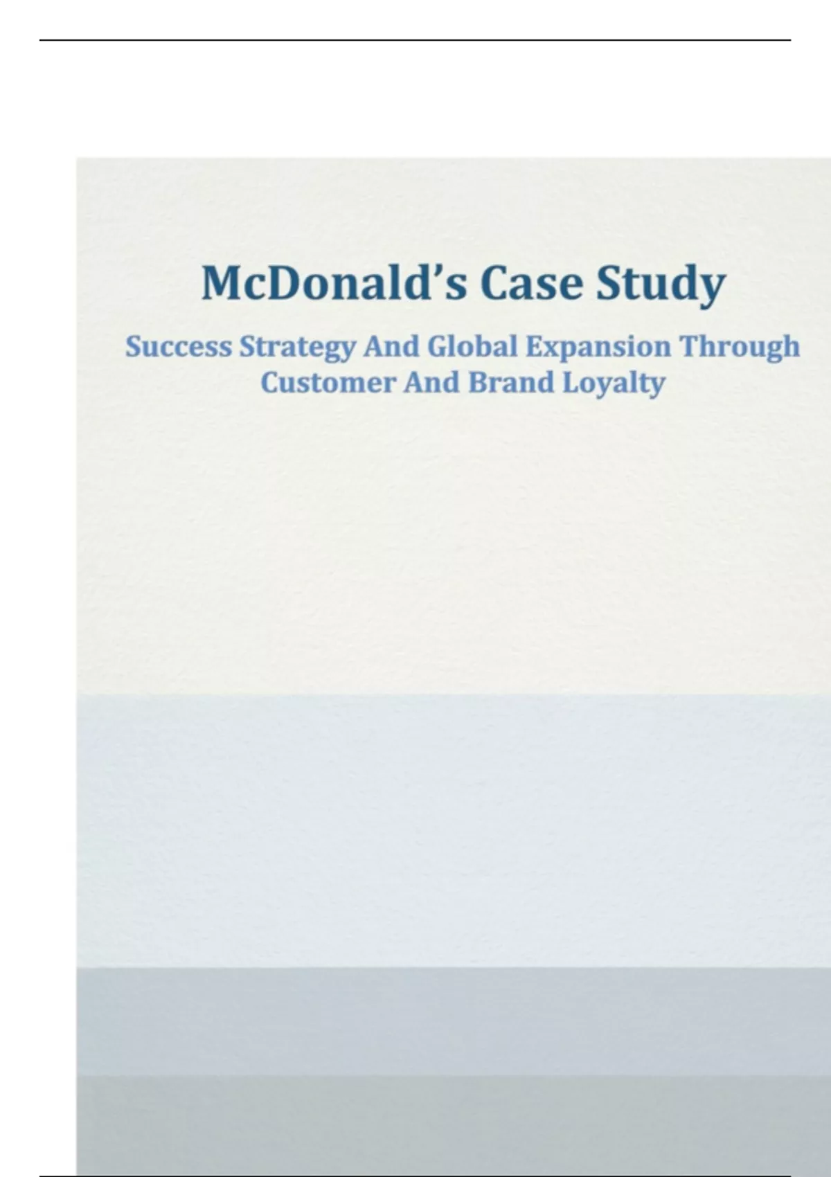 The Mcdonald`s case study explores the company`s rise as a global fast-food leader,focusing on its franchising model,strong branding ,and marketing strategies.