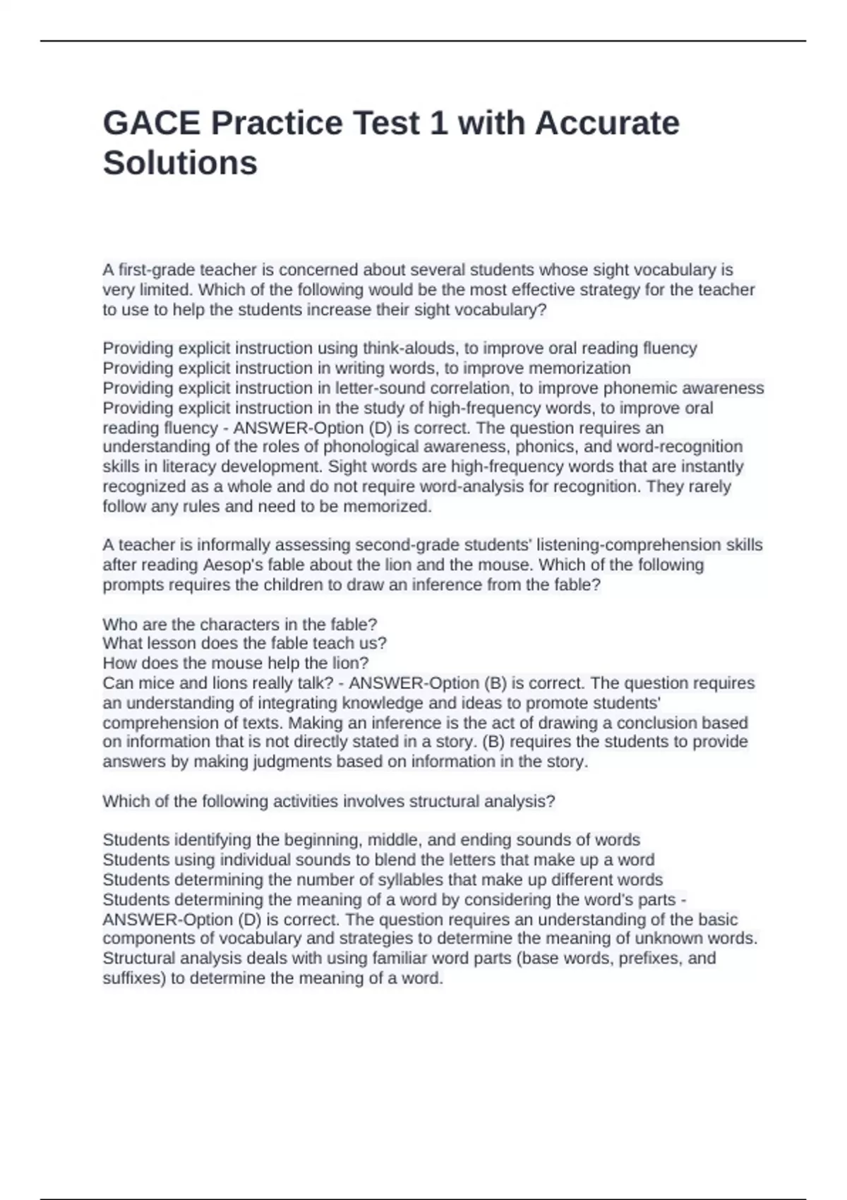 reading fluency - ANSWER-Option (D) is correct. The question requires an