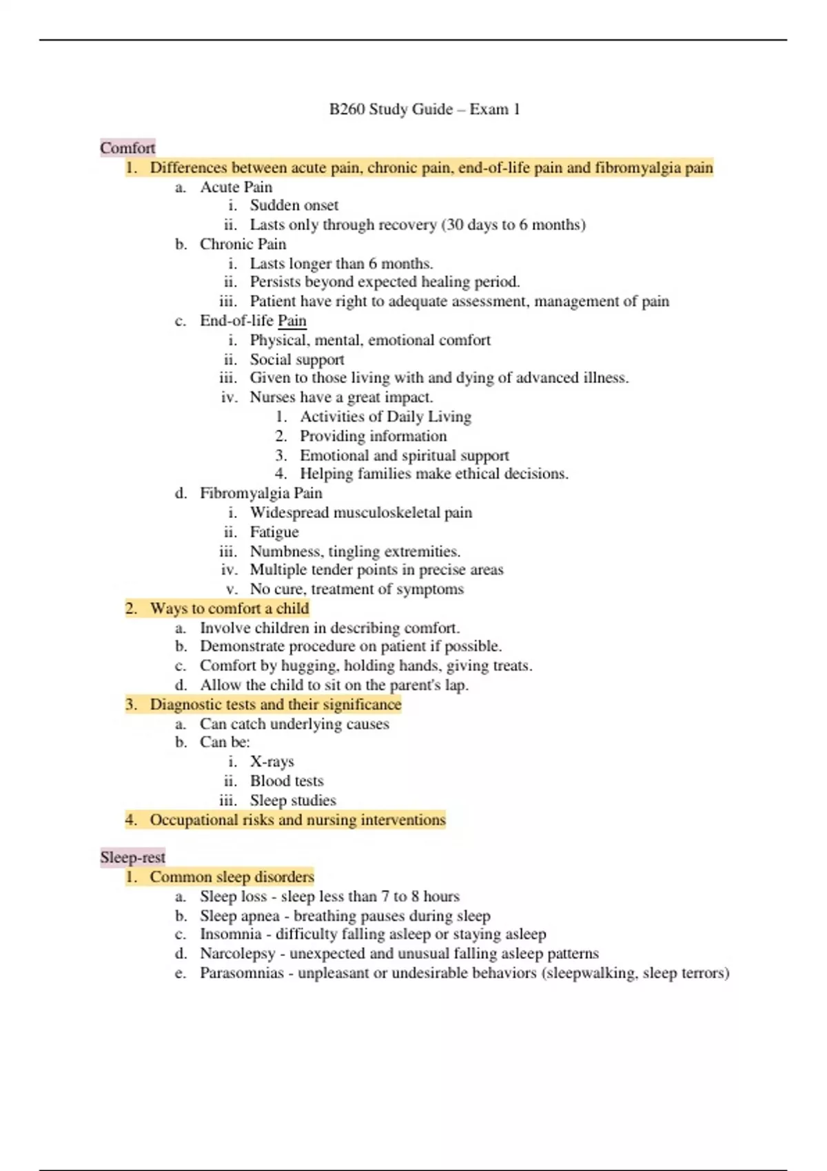 i. Physical, mental, emotional comfort