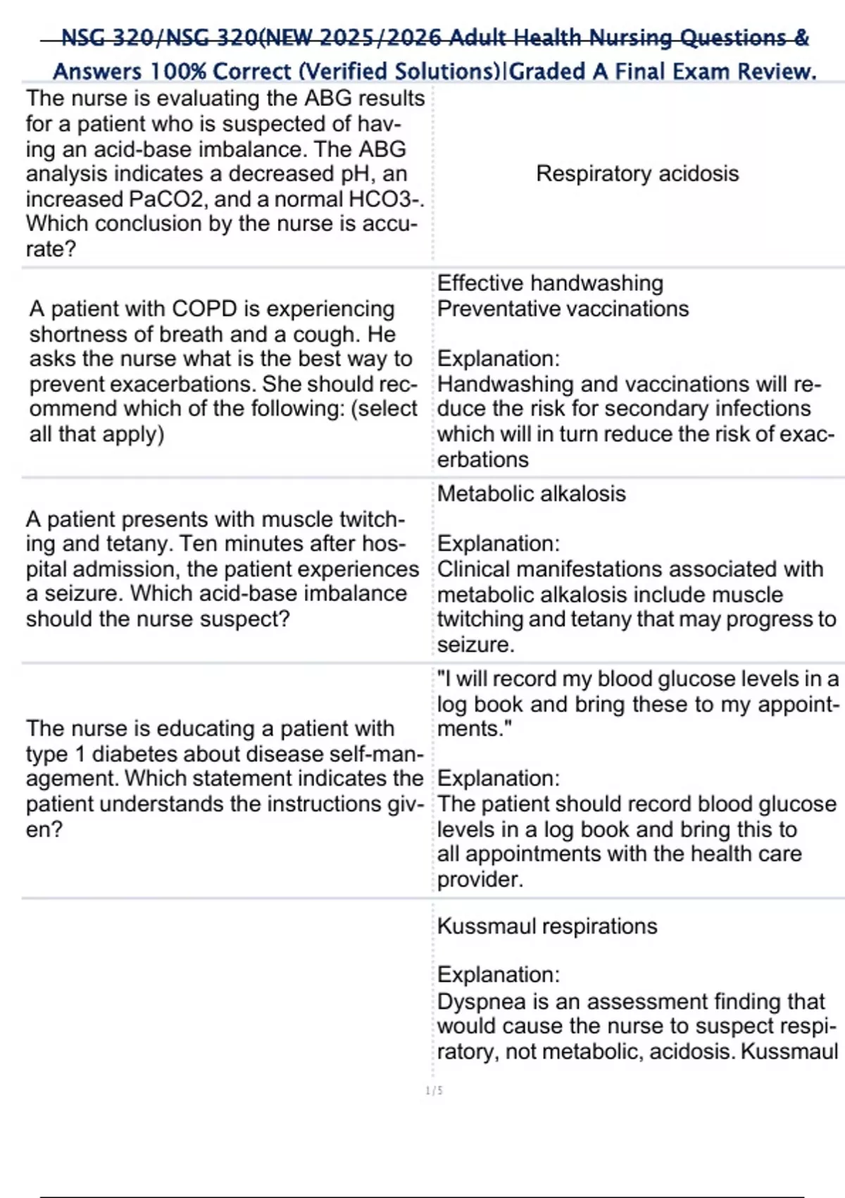 NSG 320 /NSG 320 (NEW 2025 /2026 Adult Health Nursing Questions & Answers 100% Correct (Verified Solutions)|Graded A Final Exam Review.