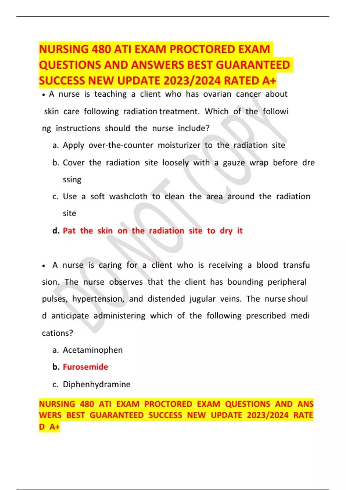 NURSING 480 ATI EXAM PROCTORED EXAM QUESTIONS AND ANSWERS BEST GUARANTEED SUCCESS NEW UPDATE 2023/2024 RATED A+