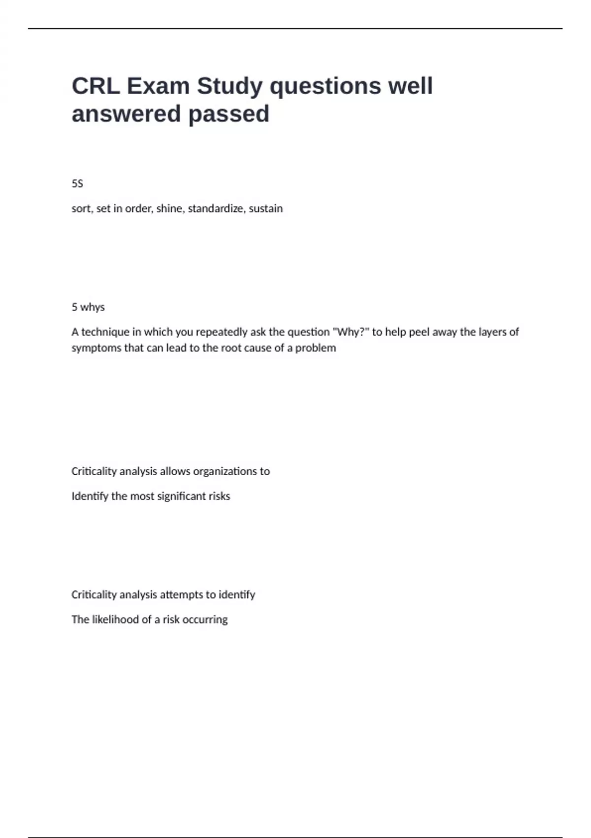 CRL Exam Study questions well