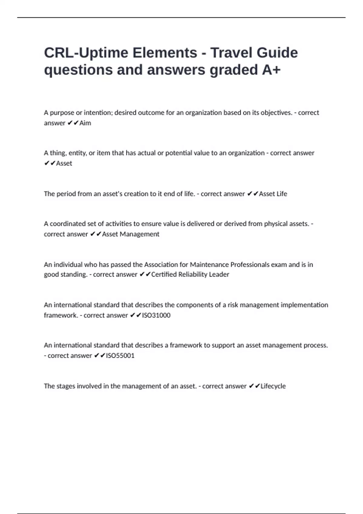 Asset Management (AM) - correct answer ✔✔Uptime Elements