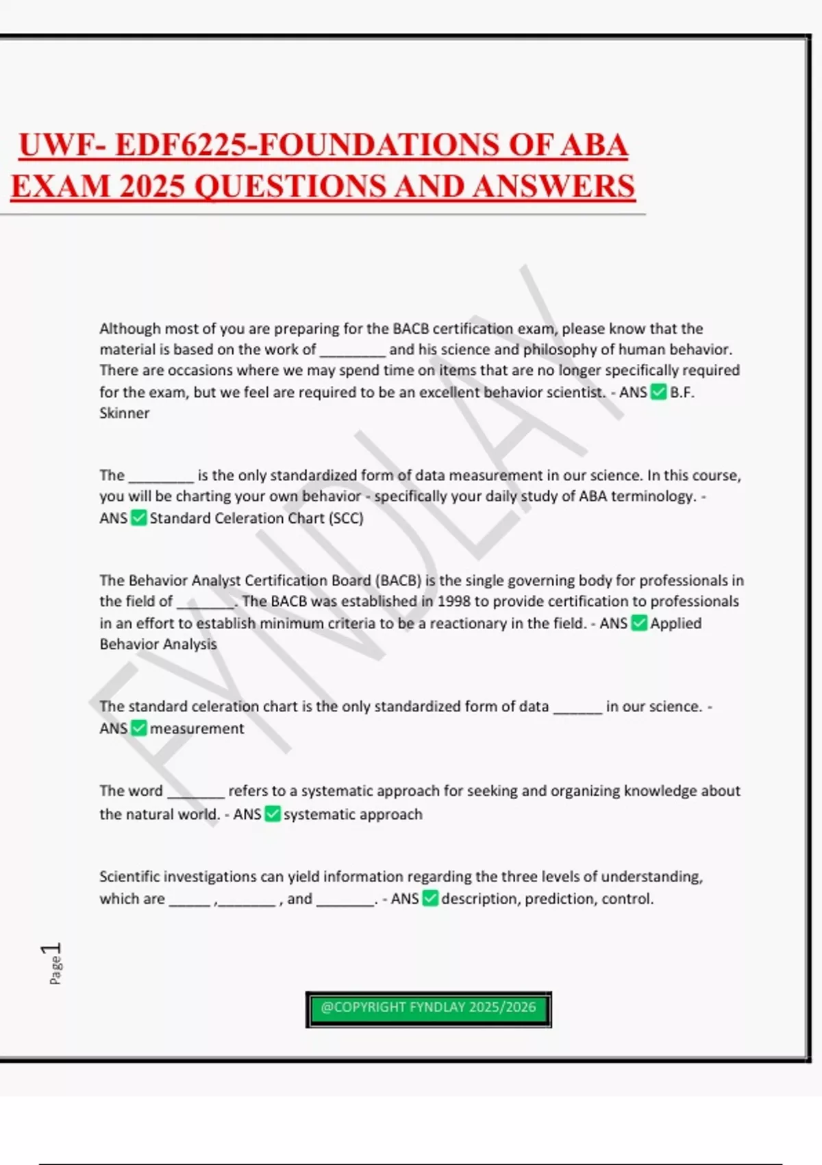 for the exam, but we feel are required to be an excellent behavior scientist. - ANS B.F.