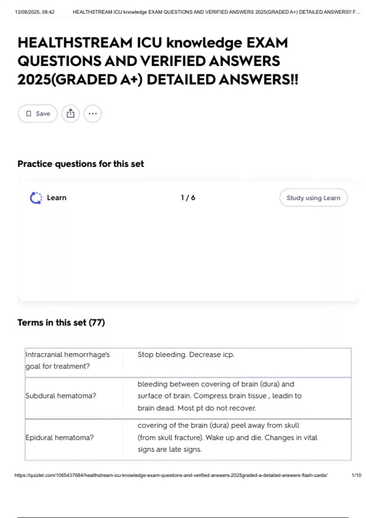 https://quizlet.com/1065437684/healthstream-icu-knowledge-exam-questions-and-verified-answers-2025graded-a-detailed-answers-flash-cards/ 1/10