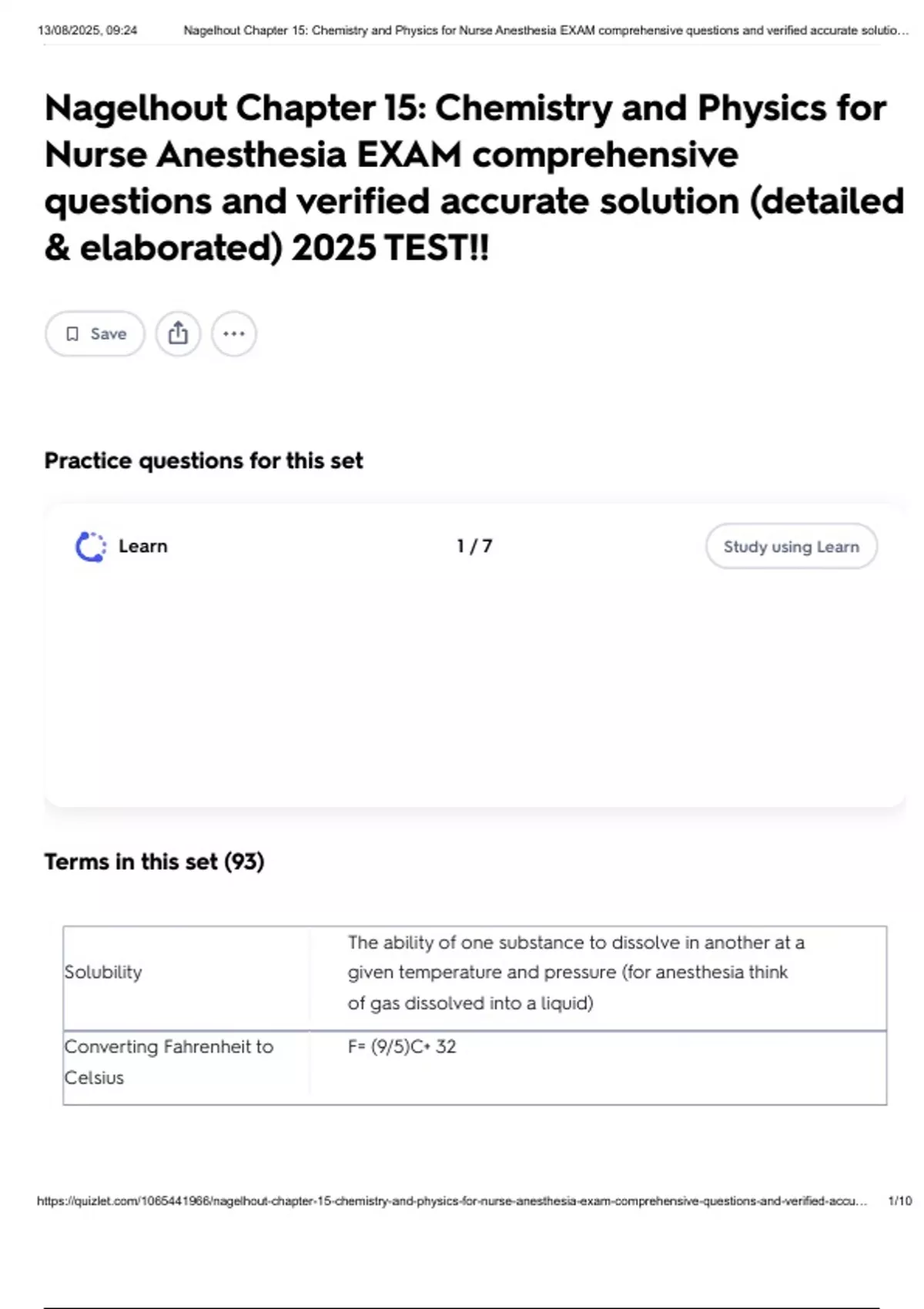 , 13/08/2025, 09:24 Nagelhout Chapter 15: Chemistry and Physics for Nurse Anesthesia EXAM comprehensive questions and verified accurate solutio…