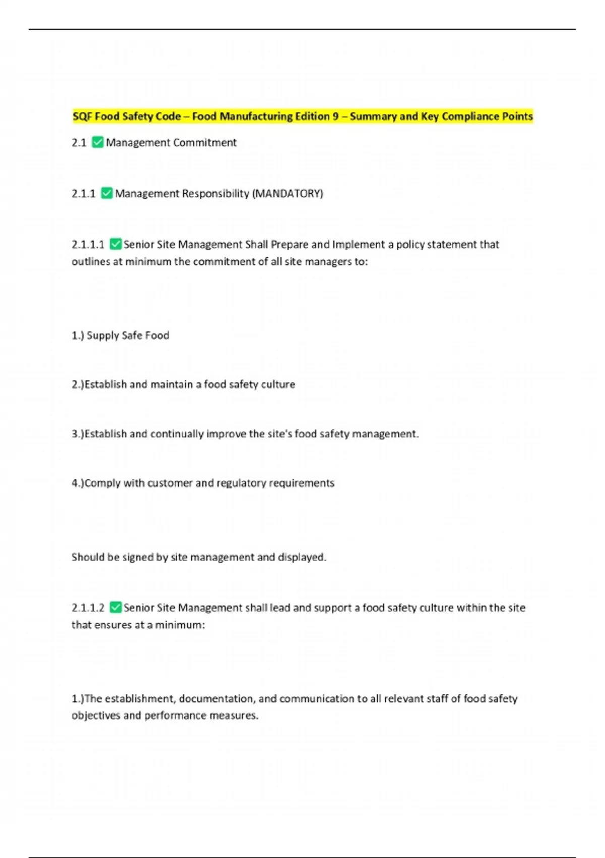 SQF Food Safety Code – Food Manufacturing Edition 9 – Summary and Key Compliance Points