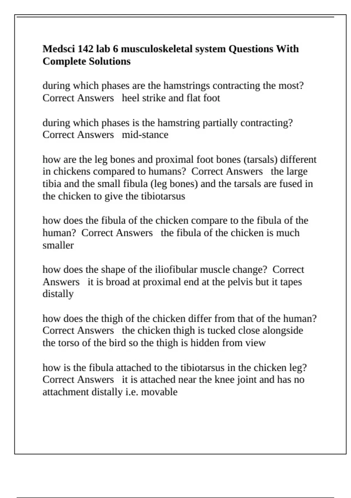 Medsci 142 lab 6 musculoskeletal system Questions With Complete Solutions