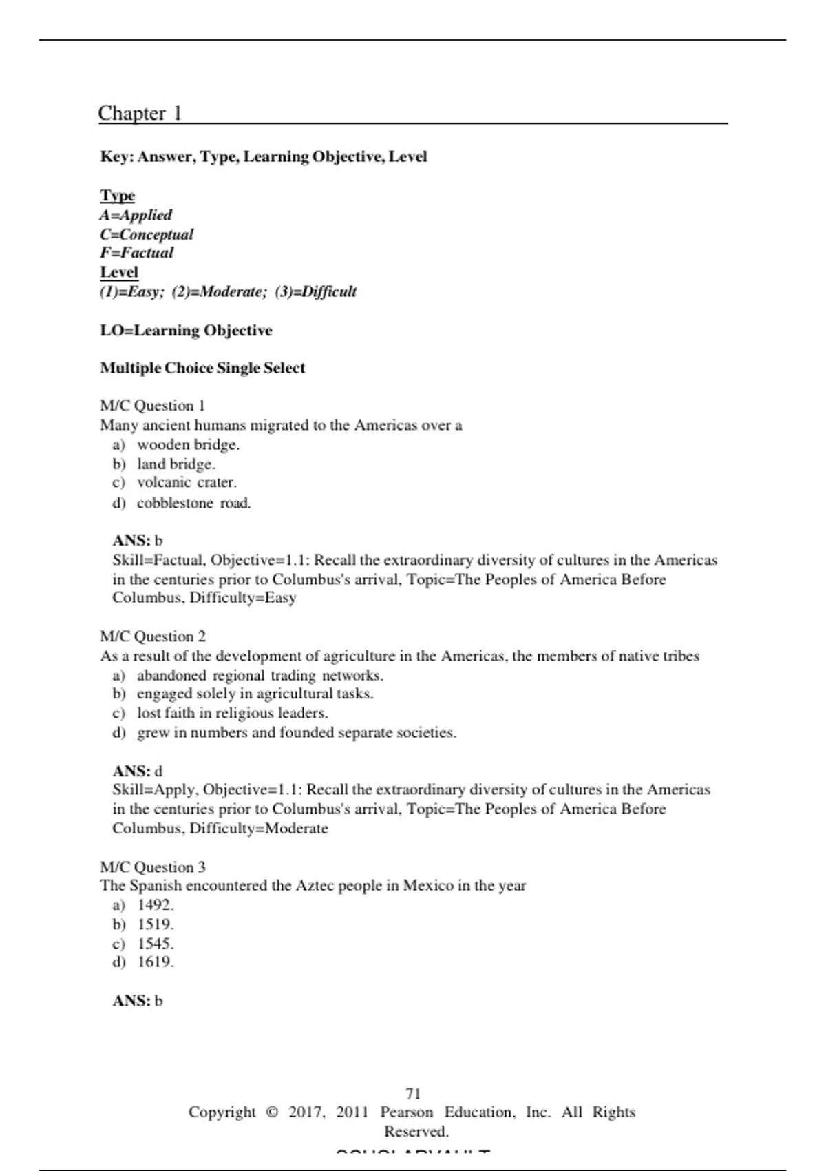 Key: Answer, Type, Learning Objective, Level