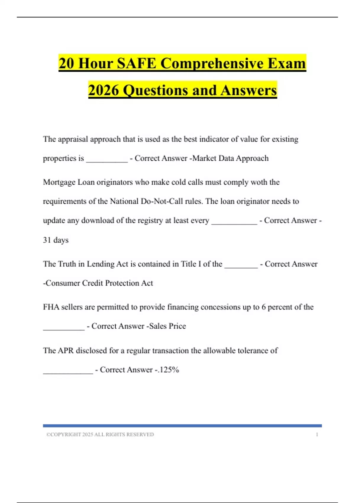 20 Hour SAFE Comprehensive Exam
