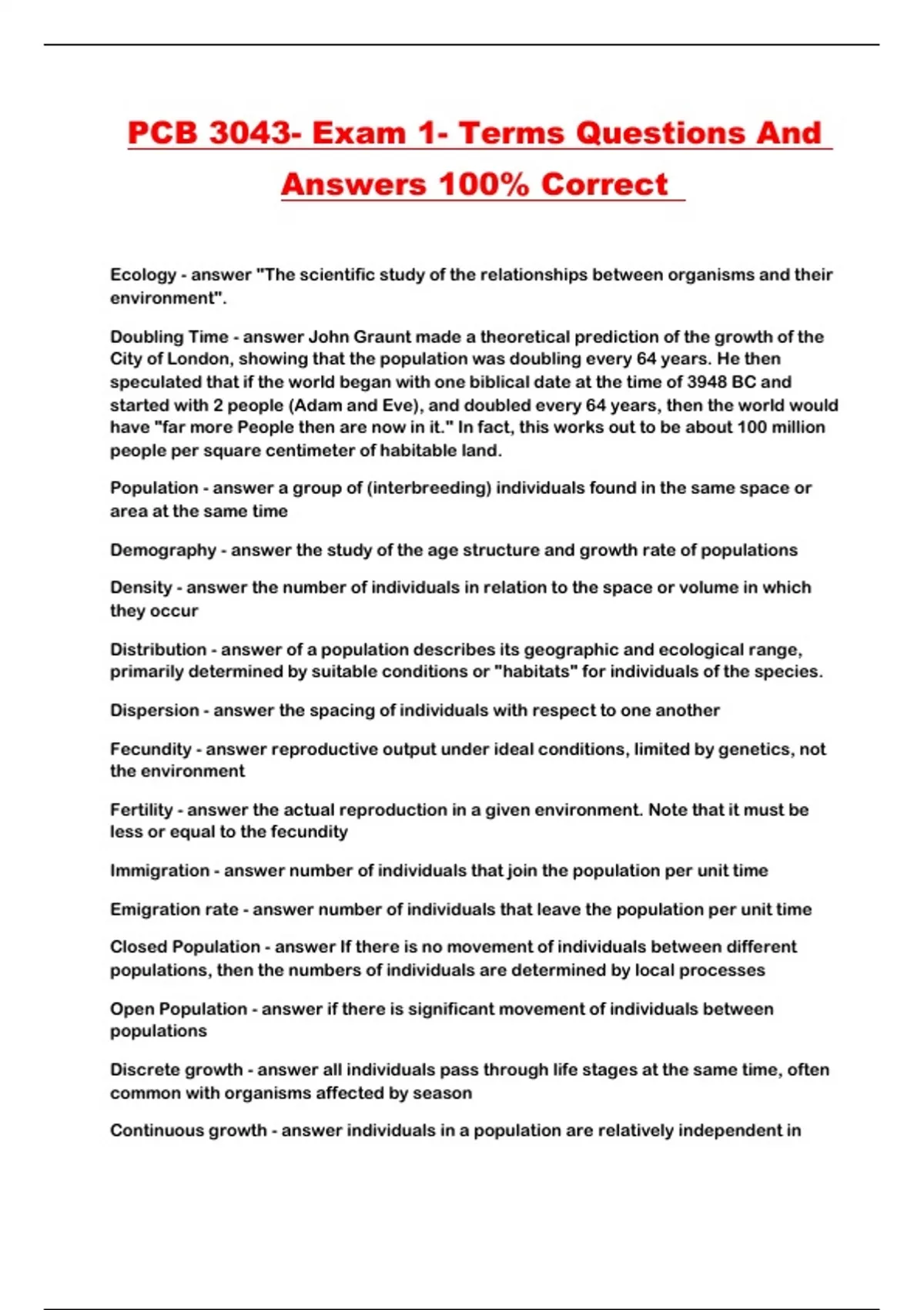 PCB 3043- Exam 1- Terms Questions And Answers 100% Correct ...
