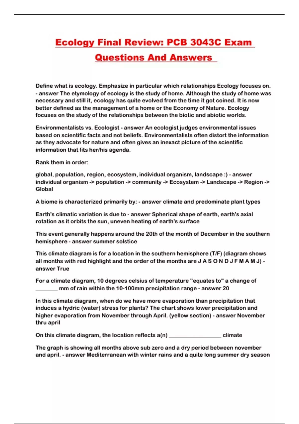 Ecology Final Review: PCB 3043C Exam