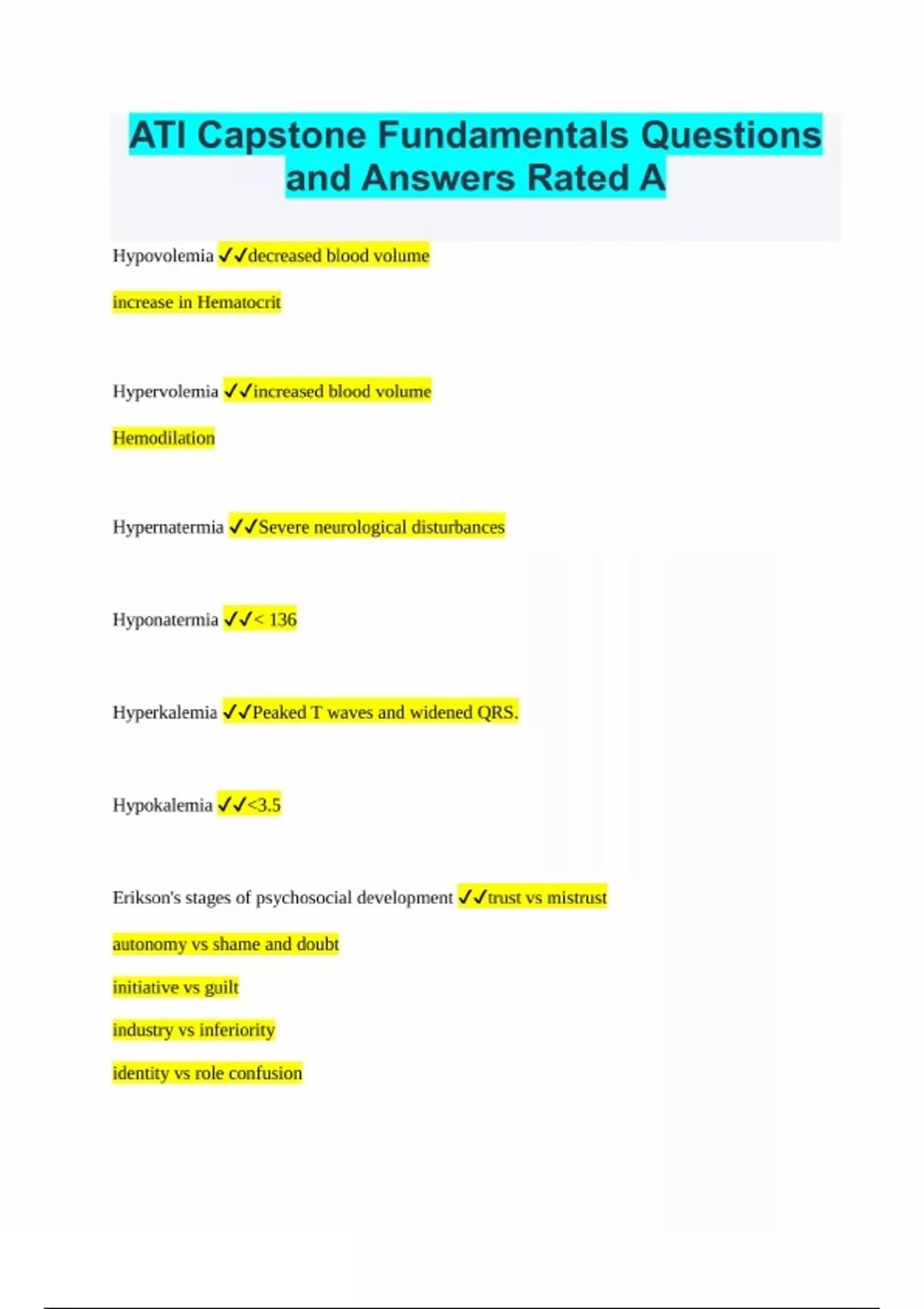 ATI Capstone Fundamentals Questions and Answers Rated A+