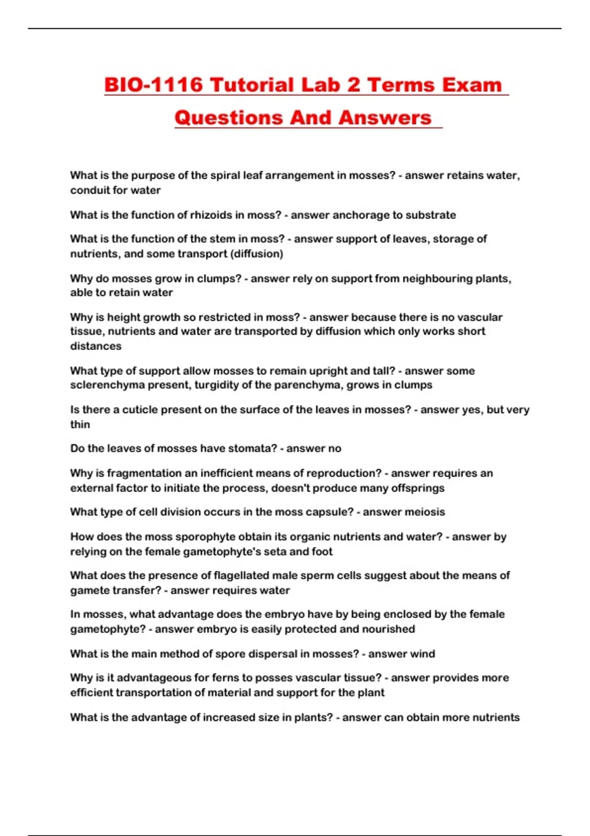 BIO-1116 Tutorial Lab 2 Terms Exam