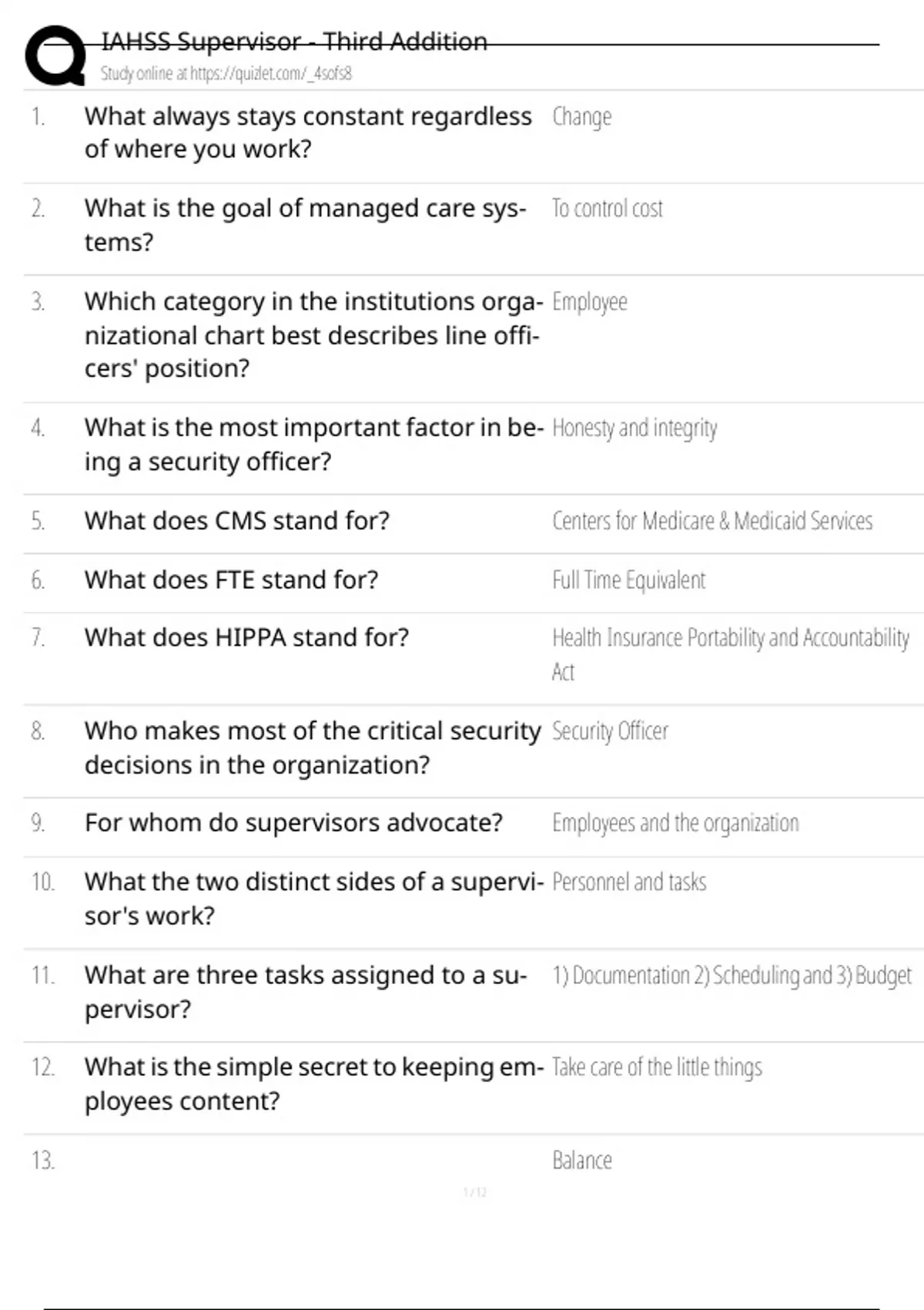 7. What does HIPPA stand for? Health Insurance Portability and Accountability