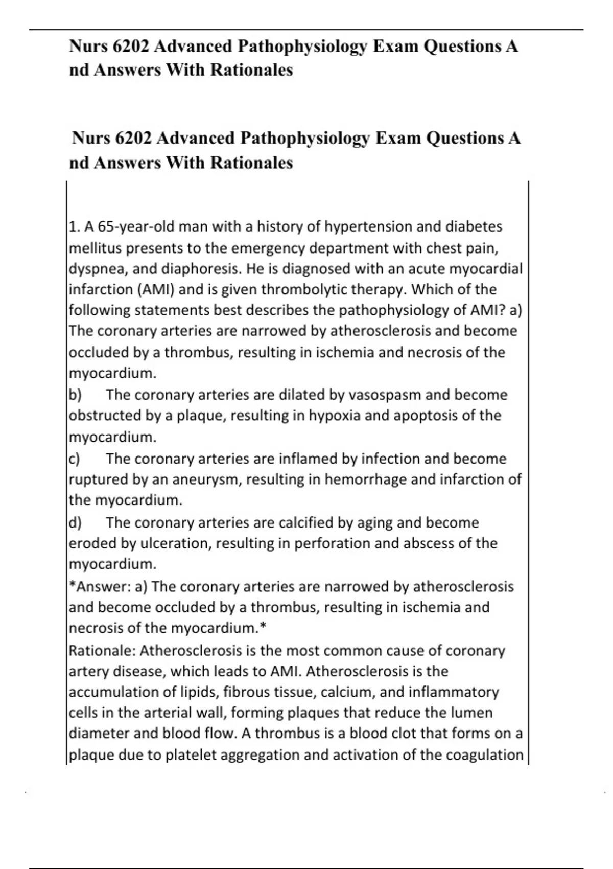 Nurs 6202 Advanced Pathophysiology Exam Questions A
