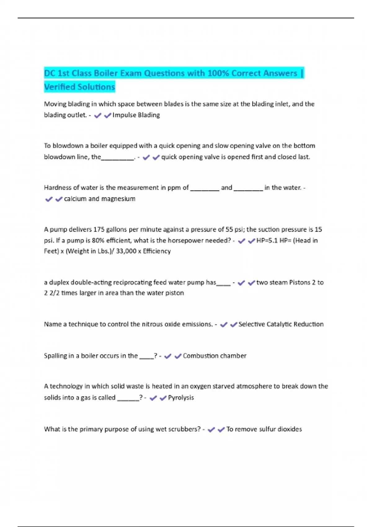 DC 1st Class Boiler Exam Questions with 100% Correct Answers | Verified Solutions