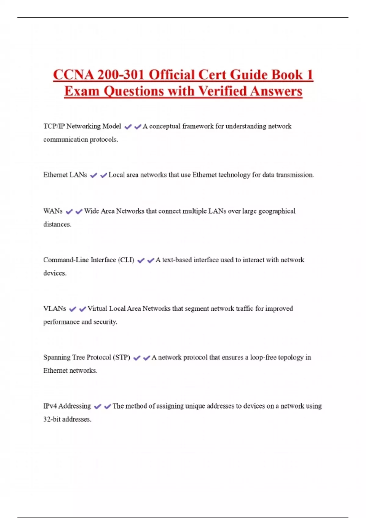 CCNA 200-301 Official Cert Guide Book 1 Exam Questions with Verified Answers