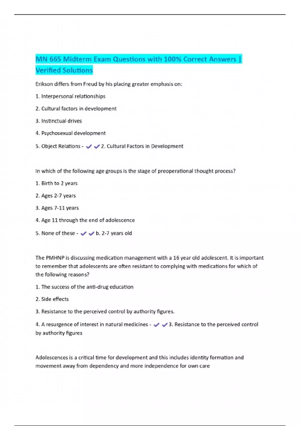 MN 665 Midterm Exam Questions with 100% Correct Answers | Verified Solutions
