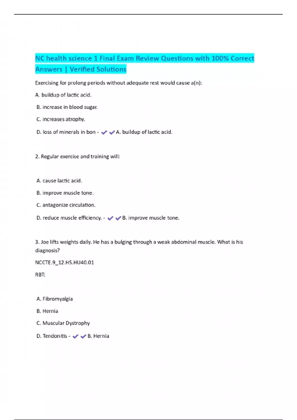 NC health science 1 Final Exam Review Questions with 100% Correct Answers | Verified Solutions