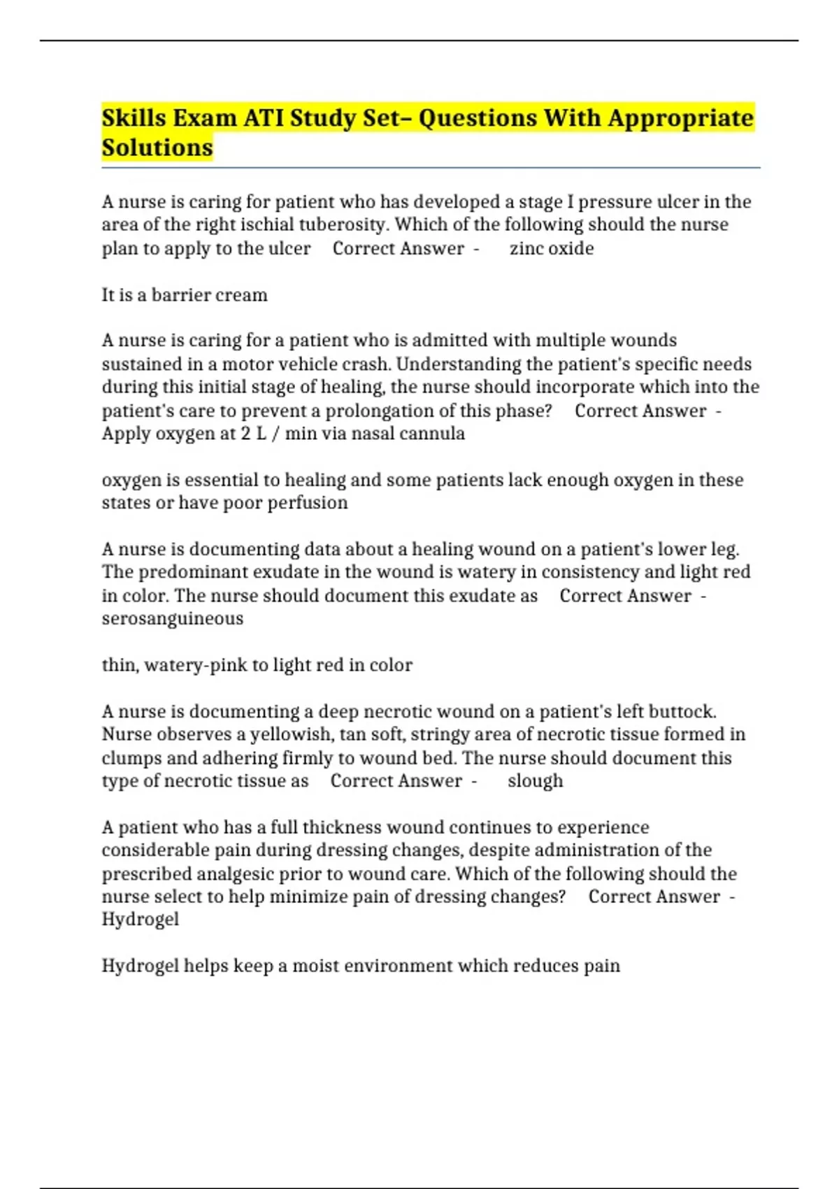 Skills Exam ATI Study Set– Questions With Appropriate Solutions