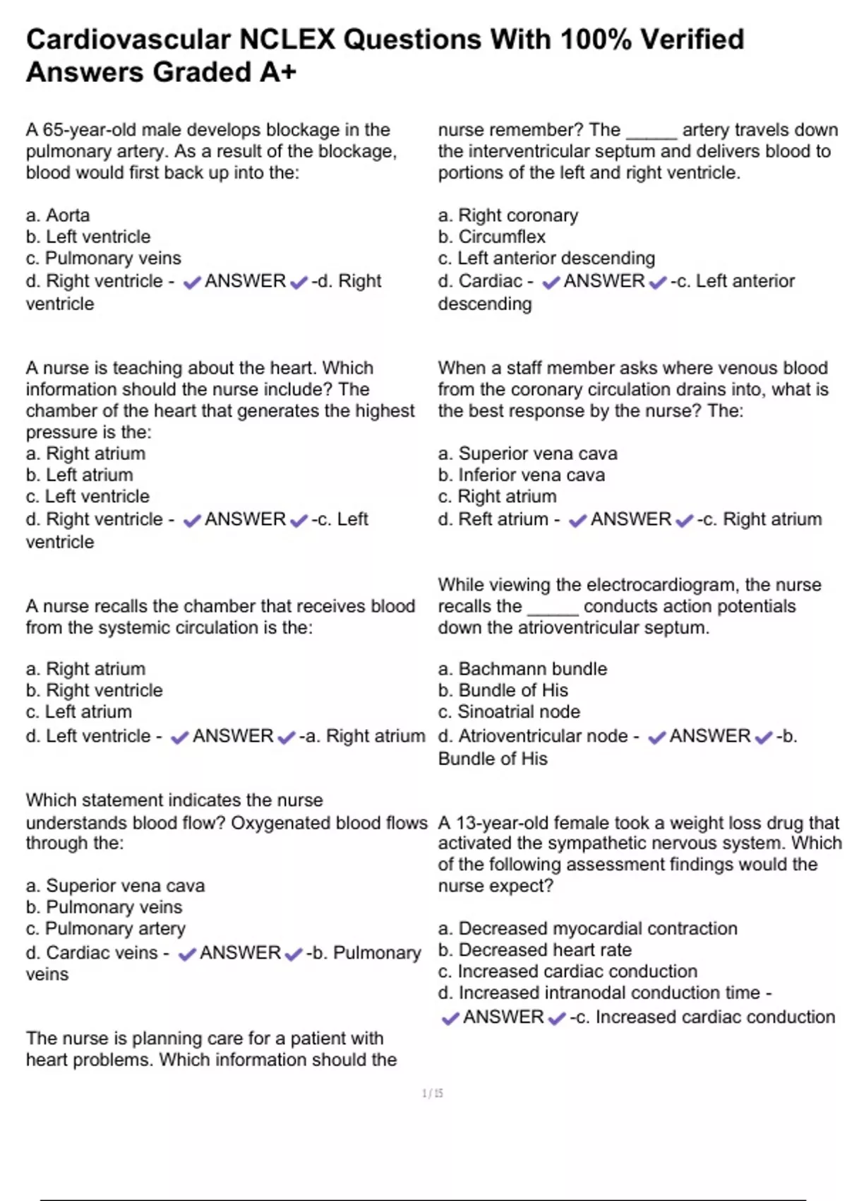 , Cardiovascular NCLEX Questions With 100% Verified