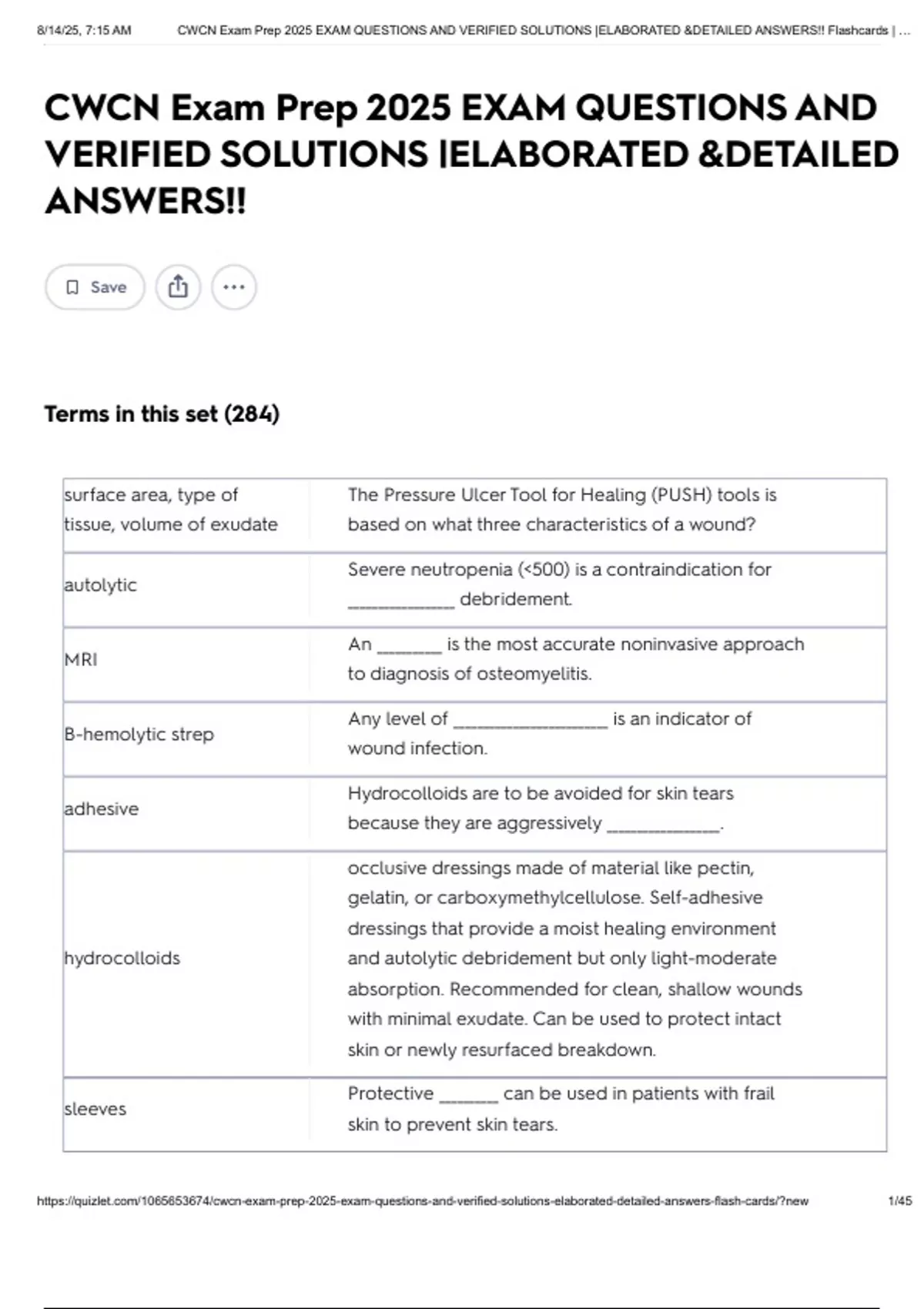 8/14/25, 7:15 AM CWCN Exam Prep 2025 EXAM QUESTIONS AND VERIFIED SOLUTIONS |ELABORATED &DETAILED ANSWERS!! Flashcards | …