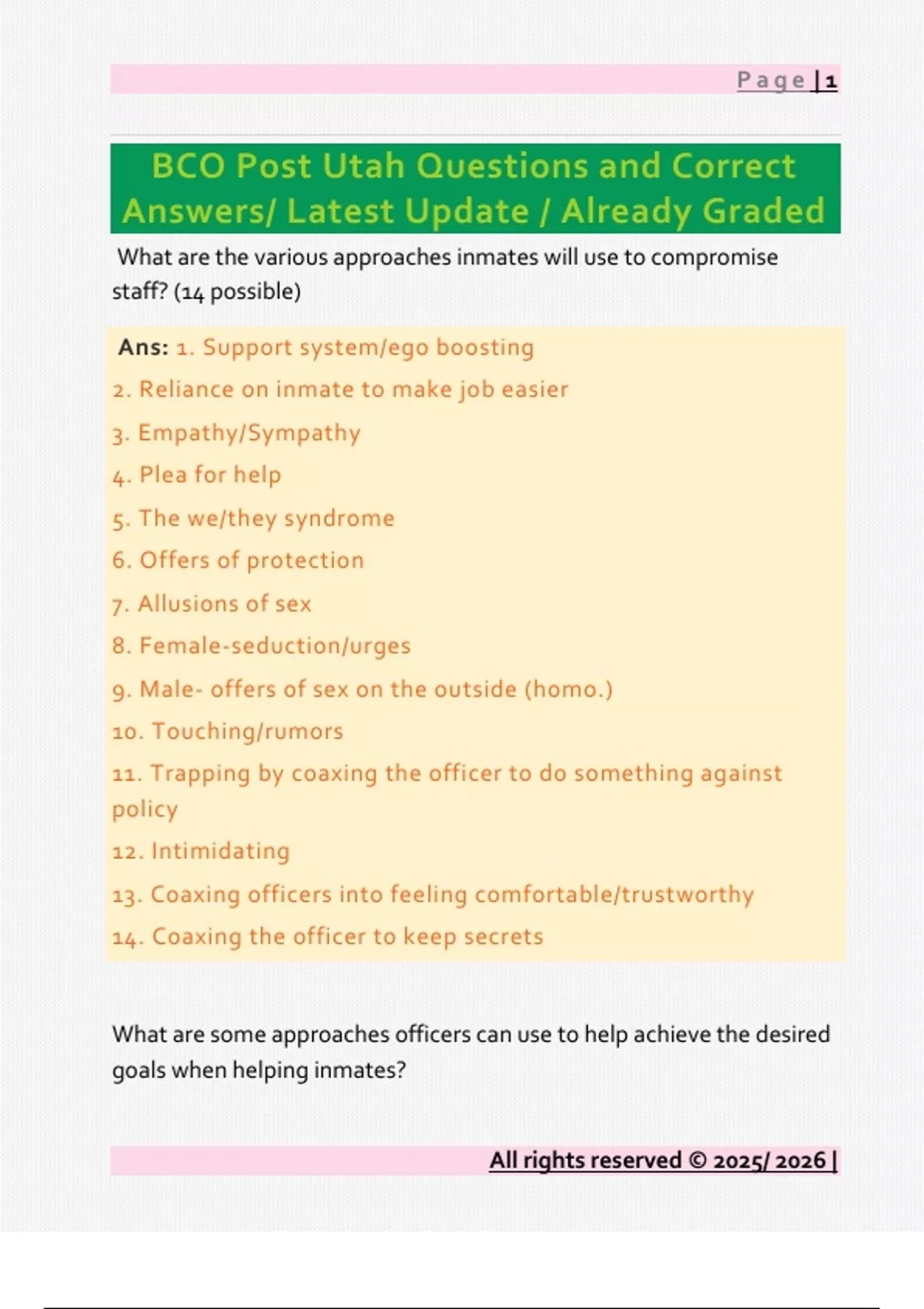 BCO Exam (PCCA) Questions and Correct Answers/ Latest Update / Already Graded