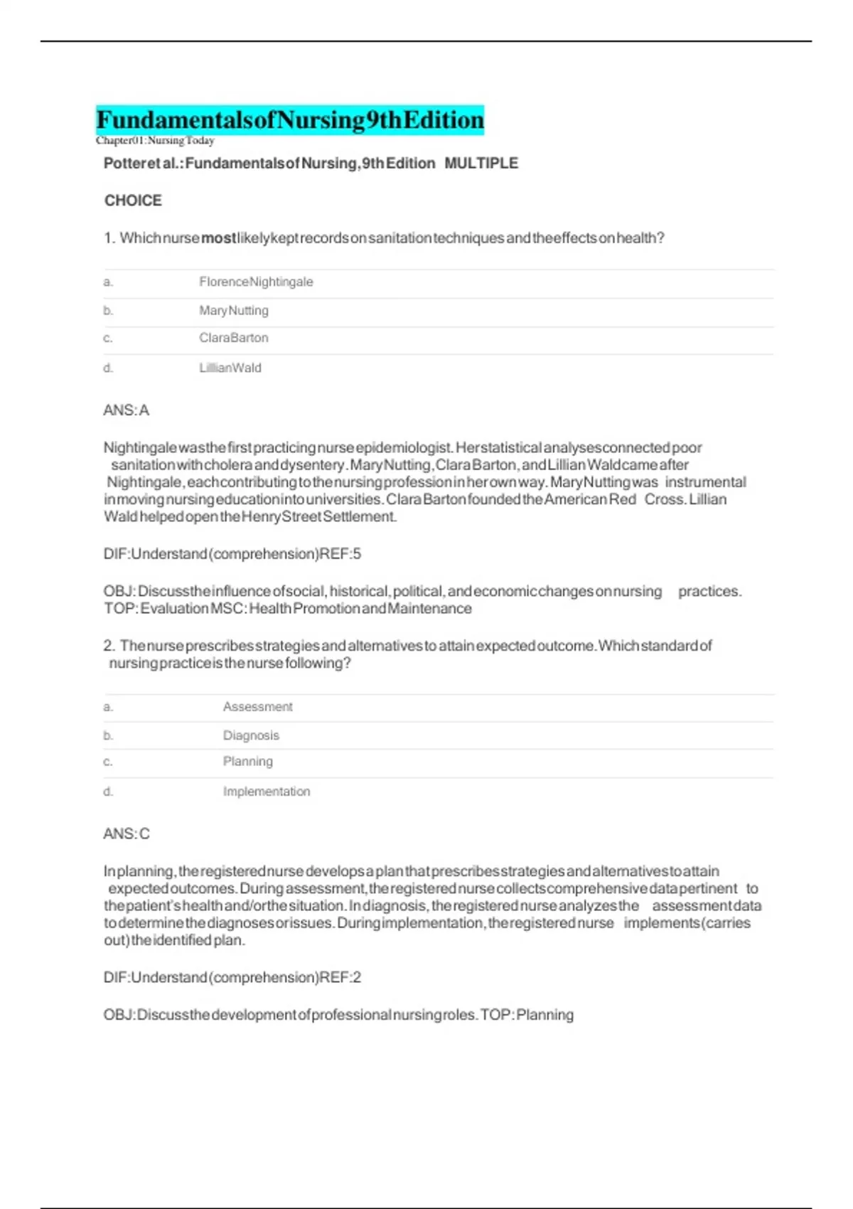 Potter et al.: Fundamentals of Nursing, 9th Edition MULTIPLE