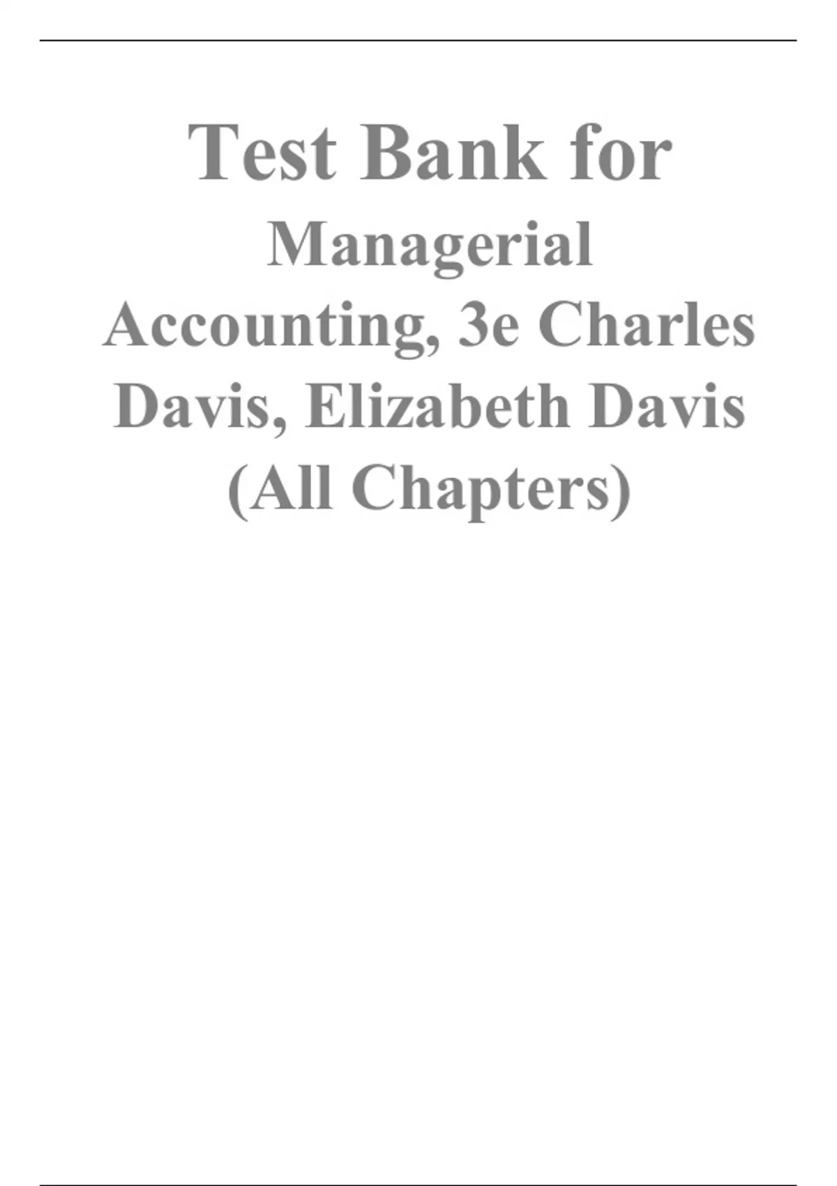 Test Bank for Managerial Accounting, 3rd Edition By Charles Davis, Elizabeth Davis (All Chapters)