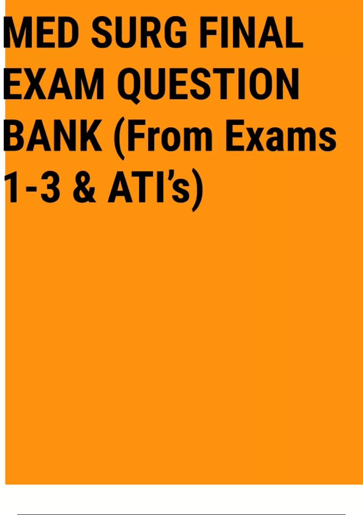 MED SURG FINAL EXAM QUESTION BANK (From Exams 1-3 & ATI’s)