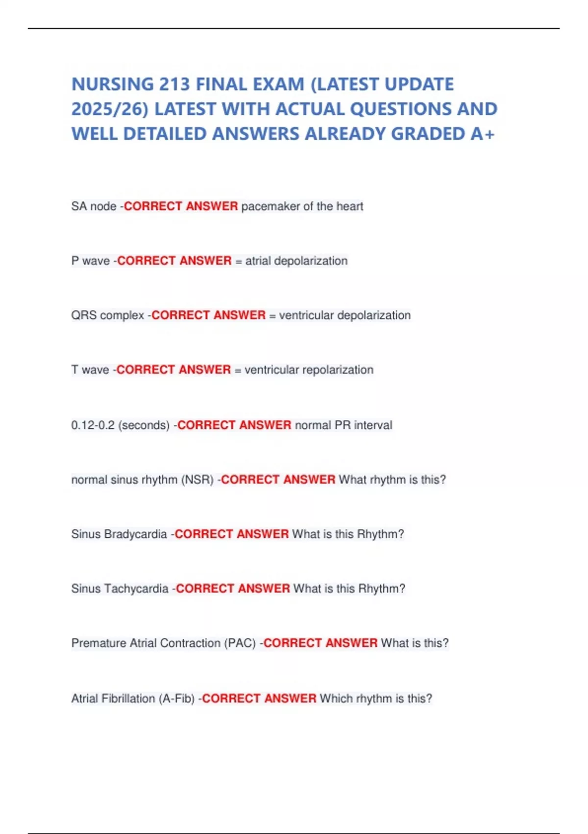 NURSING 213 FINAL EXAM (LATEST UPDATE 2025/26) LATEST WITH ACTUAL QUESTIONS AND WELL DETAILED ANSWERS ALREADY GRADED A+
