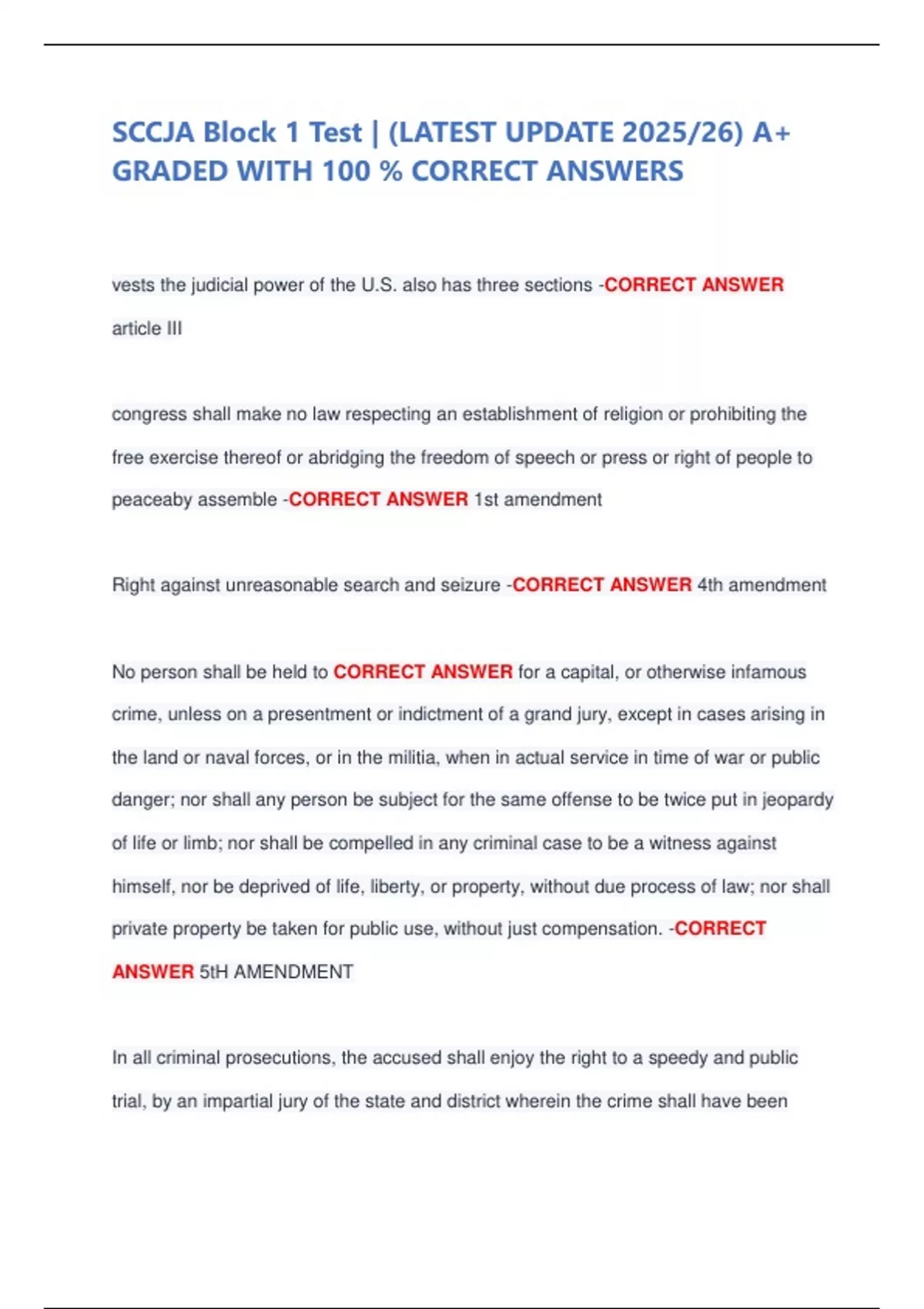 SCCJA Block 1 Test | (LATEST UPDATE 2025/26) A+ GRADED WITH 100 % CORRECT ANSWERS