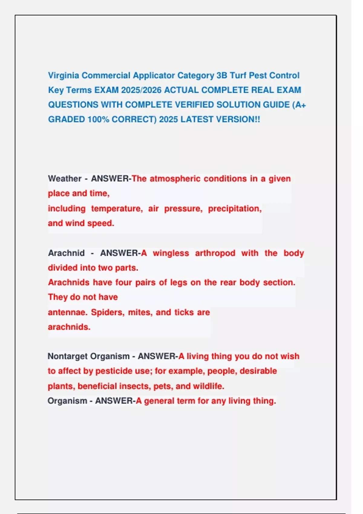 Virginia Commercial Applicator Category 3B Turf Pest Control Key Terms EXAM 2025/2026 ACTUAL COMPLETE REAL EXAM QUESTIONS WITH COMPLETE VERIFIED SOLUTION GUIDE (A+ GRADED 100% CORRECT) 2025 LATEST VERSION!! Virginia Commercial Applicator Category 3B Turf Pest Control Key Terms EXAM 2025/2026 ACTUAL COMPLETE REAL EXAM QUESTIONS WITH COMPLETE VERIFIED SOLUTION GUIDE (A+ GRADED 100% CORRECT) 2025 LATEST VERSION!! Virginia Commercial Applicator Category 3B Turf Pest Control Key Terms EXAM 2025/2026 ACTUAL COMPLETE REAL EXAM QUESTIONS WITH COMPLETE VERIFIED SOLUTION GUIDE (A+ GRADED 100% CORRECT) 2025 LATEST VERSION!! Virginia Commercial Applicator Category 3B Turf Pest Control Key Terms EXAM 2025/2026 ACTUAL COMPLETE REAL EXAM QUESTIONS WITH COMPLETE VERIFIED SOLUTION GUIDE (A+ GRADED 100% CORRECT) 2025 LATEST VERSION!! Virginia Commercial Applicator Category 3B Turf Pest Control Key Terms EXAM 2025/2026 ACTUAL COMPLETE REAL EXAM QUESTIONS WITH COMPLETE VERIFIED SOLUTION GUIDE (A+ GRADED 100% CORRECT) 2025 LATEST VERSION!! Virginia Commercial Applicator Category 3B Turf Pest Control Key Terms EXAM 2025/2026 ACTUAL COMPLETE REAL EXAM QUESTIONS WITH COMPLETE VERIFIED SOLUTION GUIDE (A+ GRADED 100% CORRECT) 2025 LATEST VERSION!! Virginia Commercial Applicator Category 3B Turf Pest Control Key Terms EXAM 2025/2026 ACTUAL COMPLETE REAL EXAM QUESTIONS WITH COMPLETE VERIFIED SOLUTION GUIDE (A+ GRADED 100% CORRECT) 2025 LATEST VERSION!!