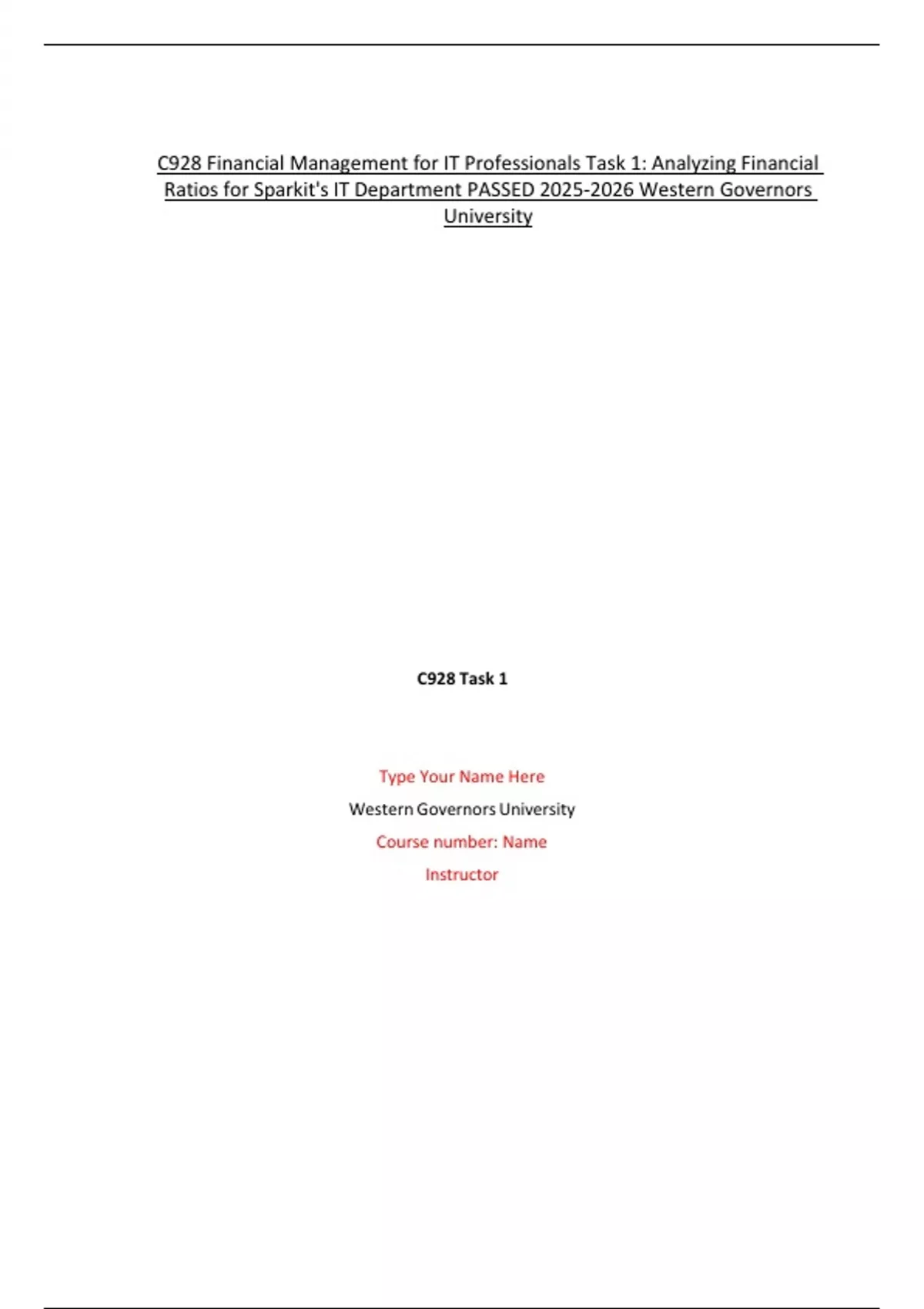 Ratios for Sparkit's IT Department PASSED 2025-2026 Western Governors