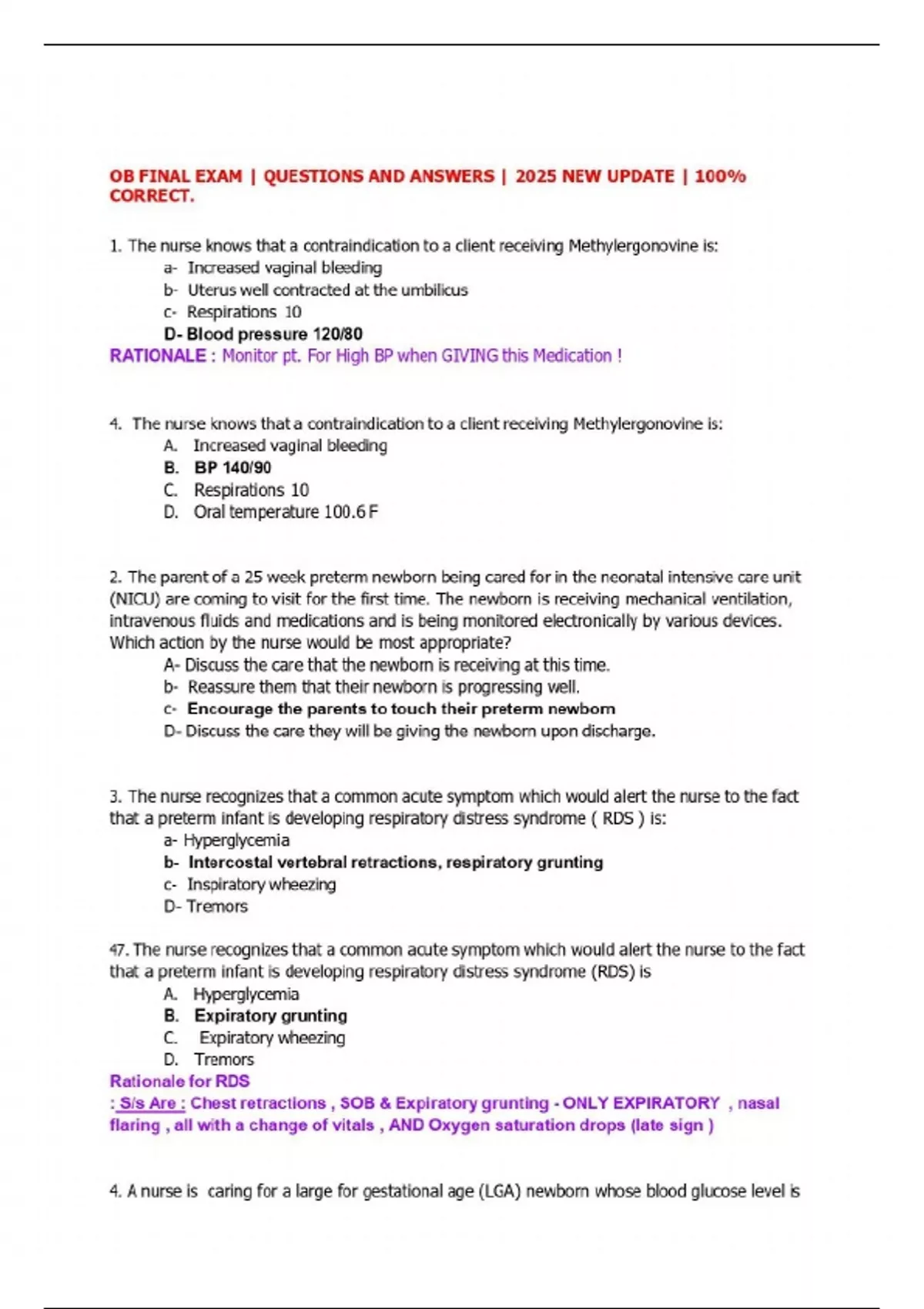 OB FINAL EXAM | QUESTIONS AND ANSWERS | 2025 NEW UPDATE | 100% CORRECT.