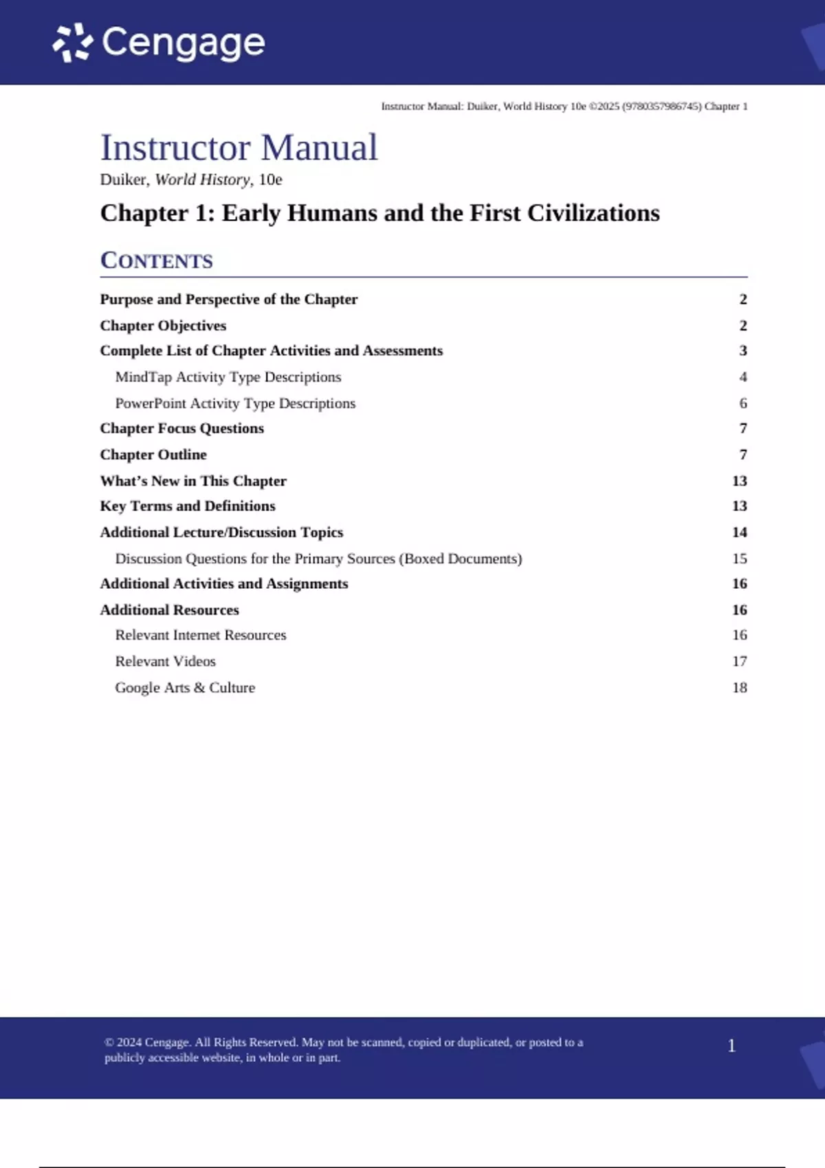 , Instruсtor Manuаl: Duiker, World Hіѕtоry 10е ©2025 (9780357986745) Сhapter 1