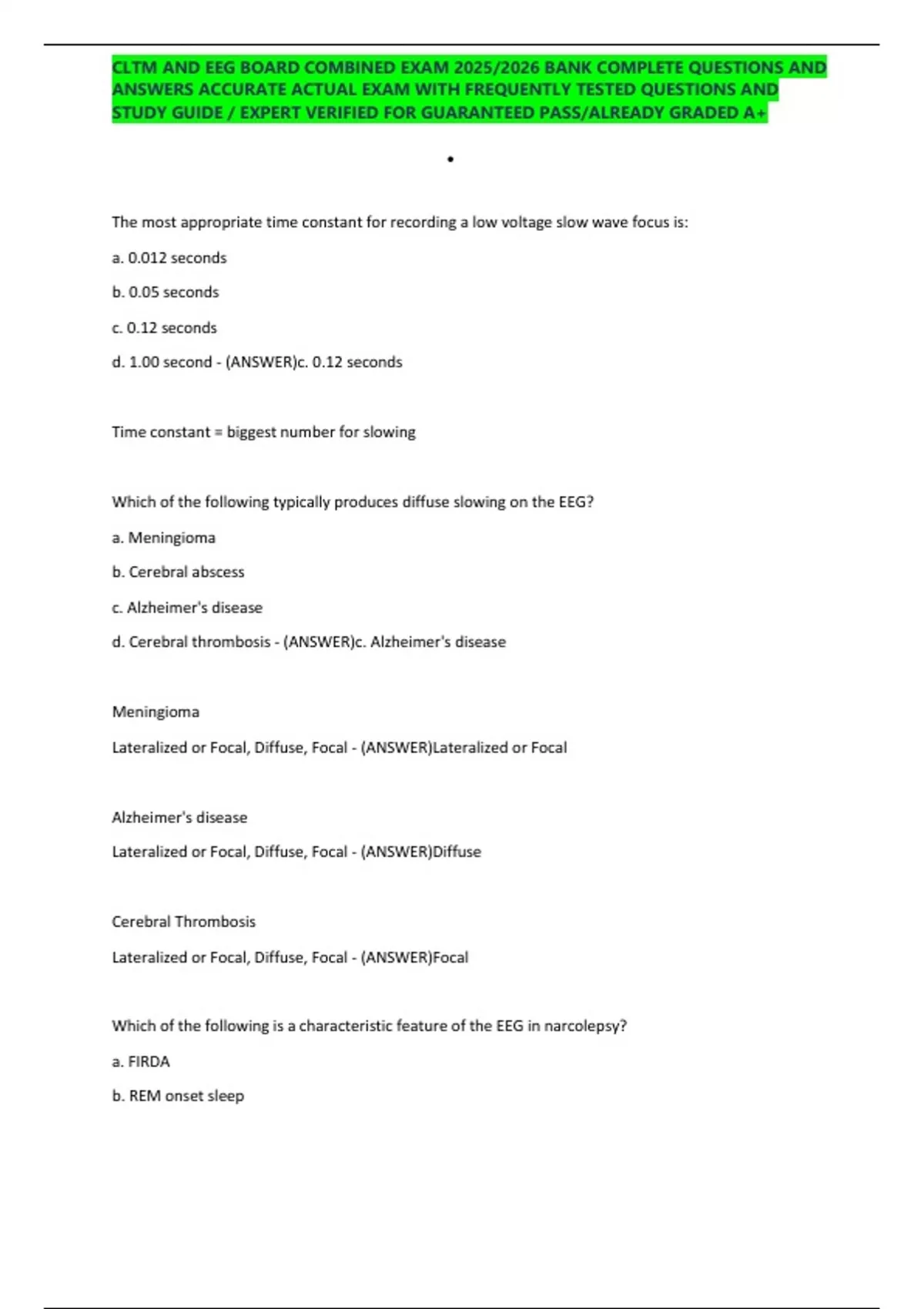 , CLTM AND EEG BOARD COMBINED EXAM 2025/2026 BANK COMPLETE QUESTIONS AND